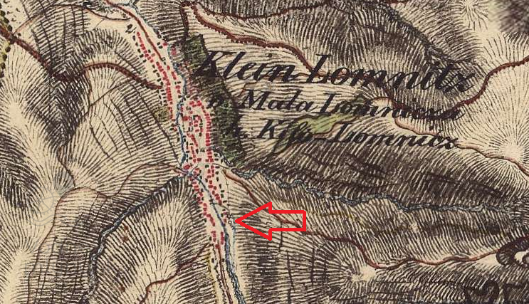 Vyšná časť obce, neďaleko mosta cez potok na pravej strane doliny