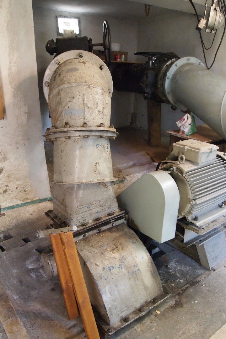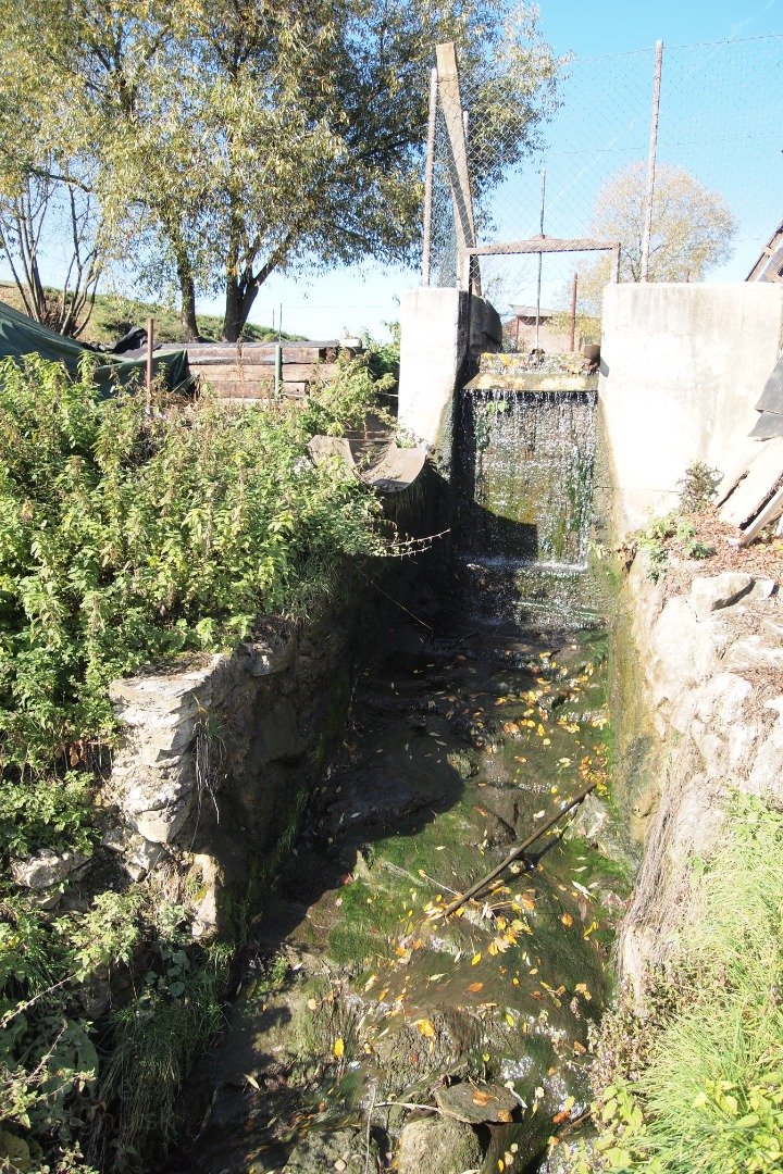 Po vodných kolesách sa v pôvodnej návodnej stene mlynice zachovali sekundárne vymurované otvory tehlou - pôvodne mal mlyn dvojicu kolies, neskôr boli oba otvory zamurované a bol vybudovaný nový otvor pre hriadeľ už iba jedného kolesa, ktorý bol po zavedení turbíny (roku 1931) využitý pre napojenie transmisie.