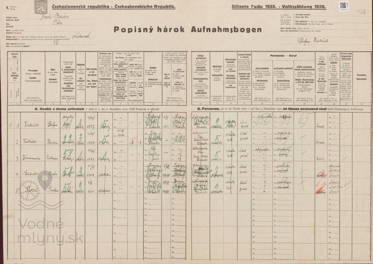 Priezviská mlynárov pôsobiacich vo mlyne: