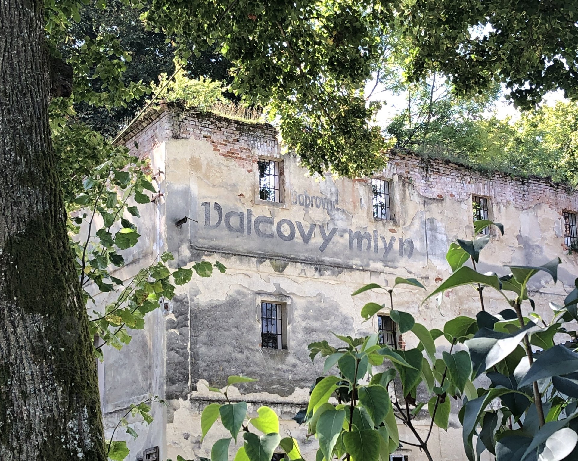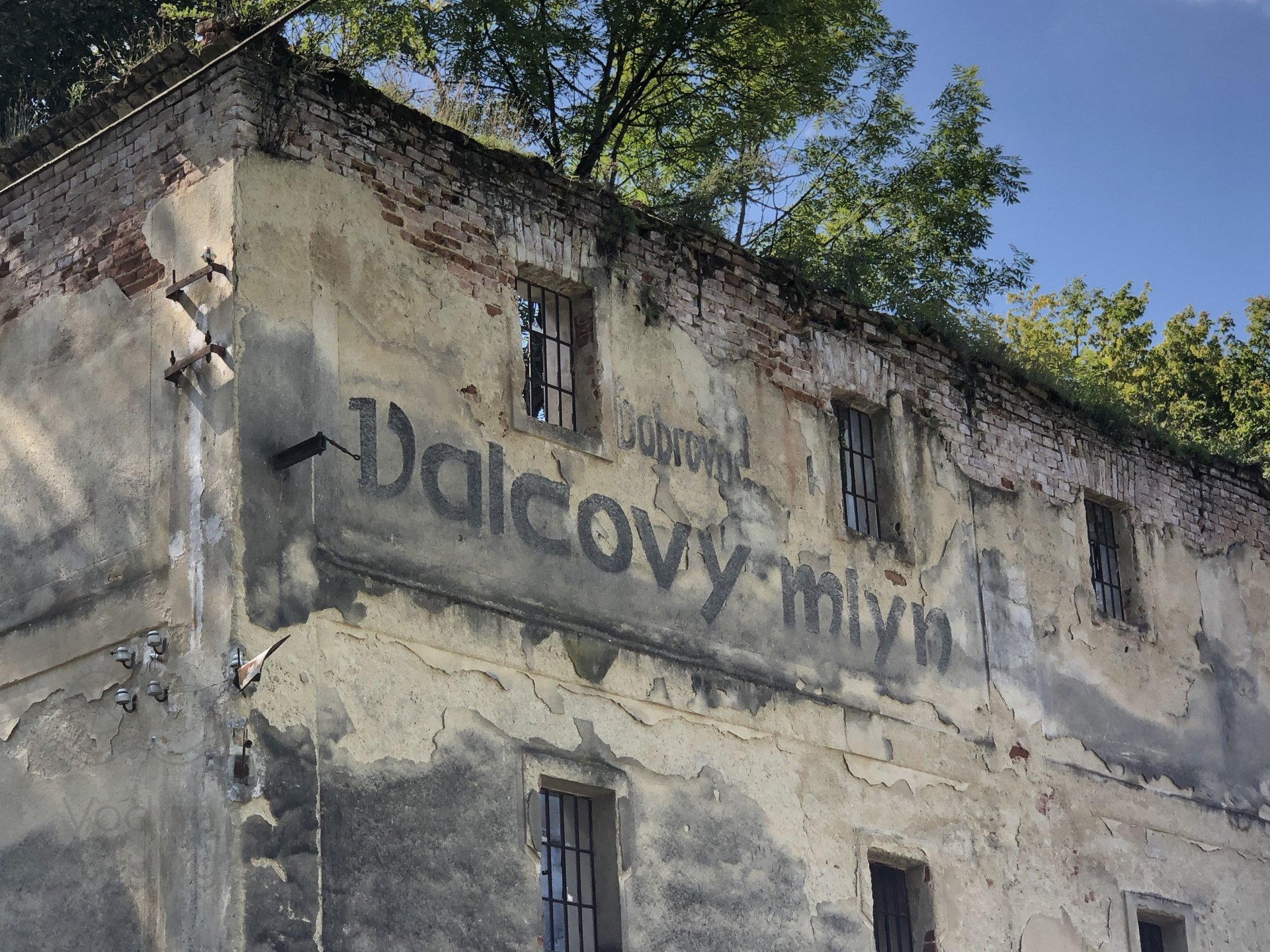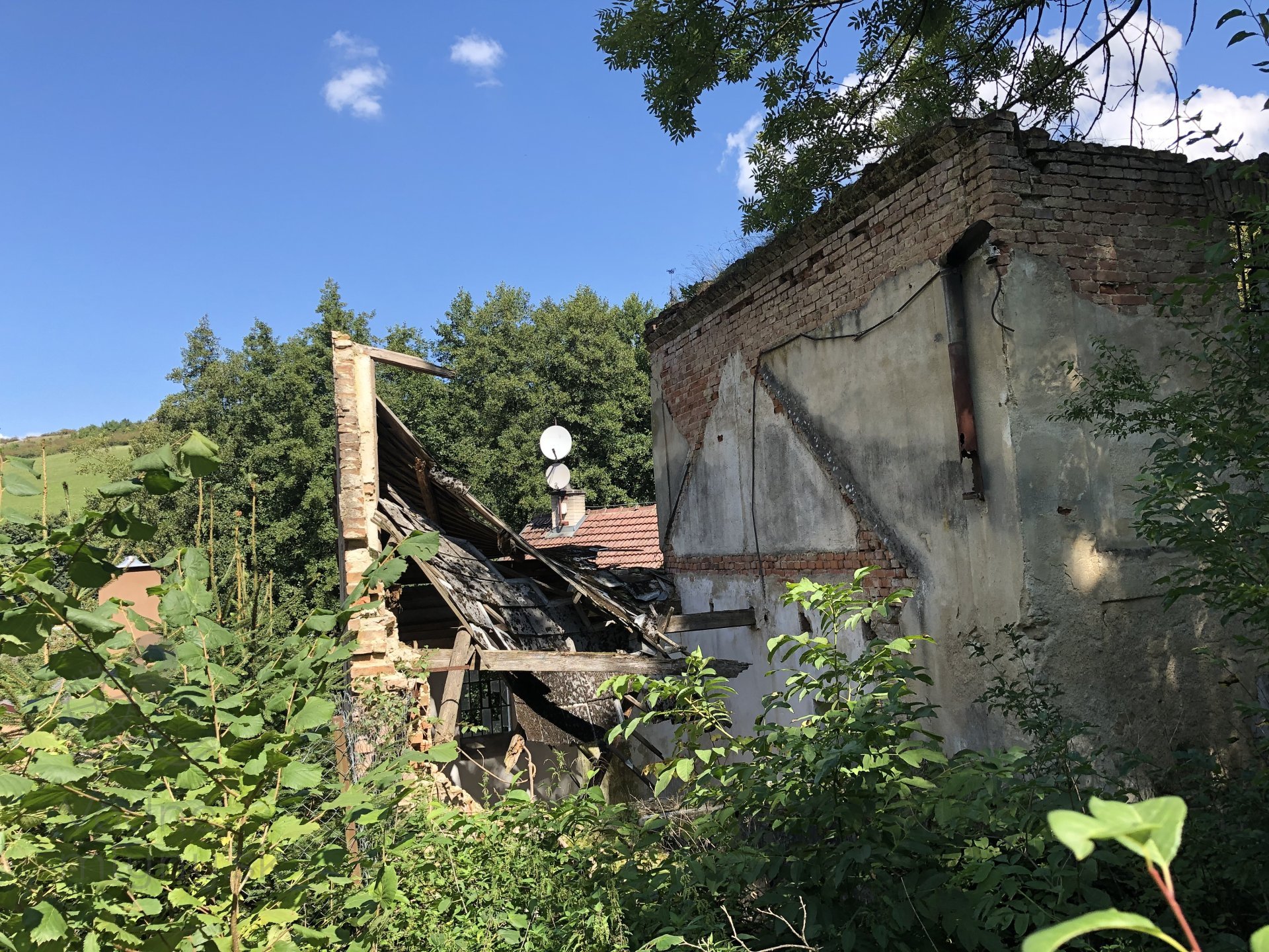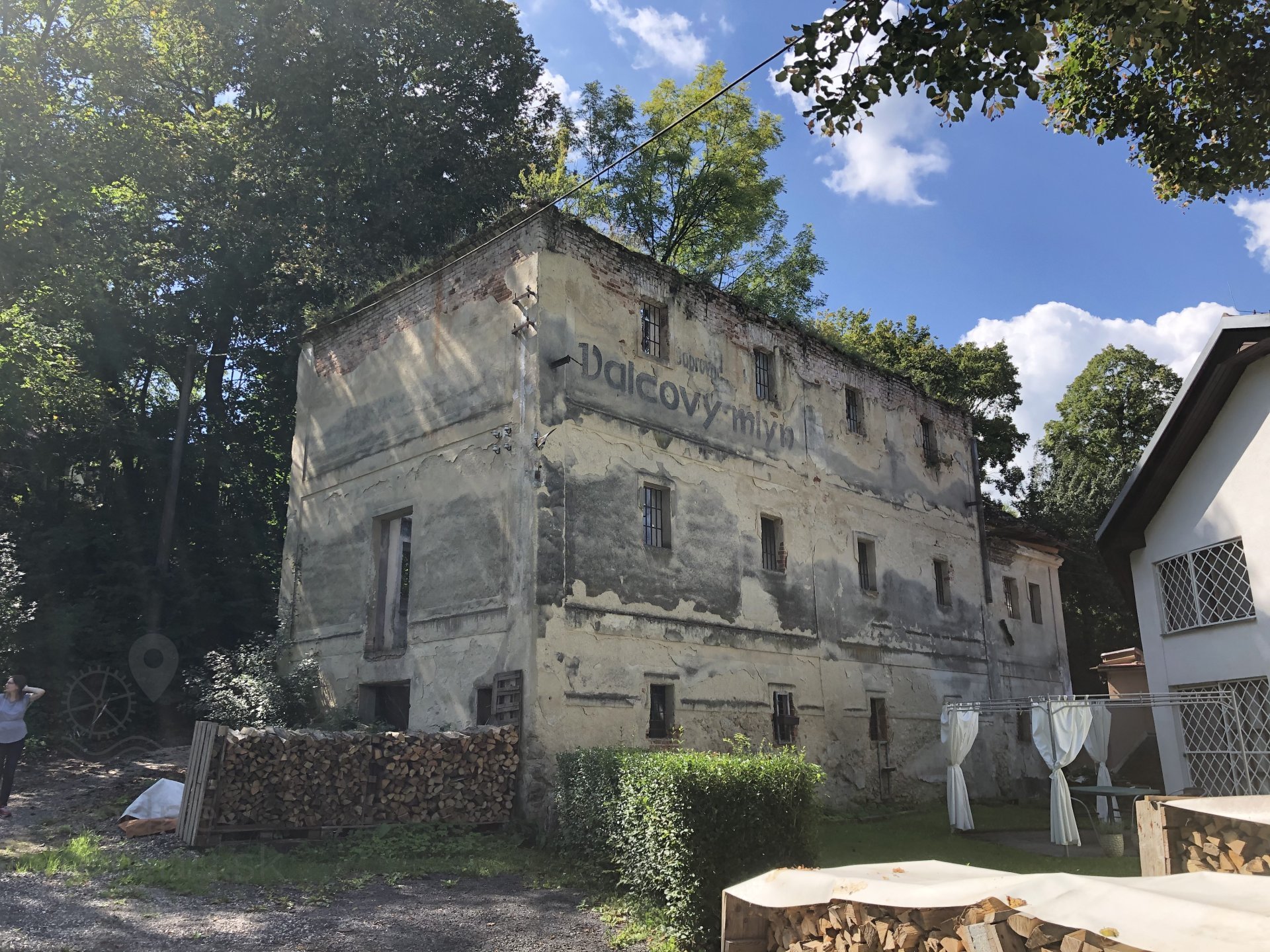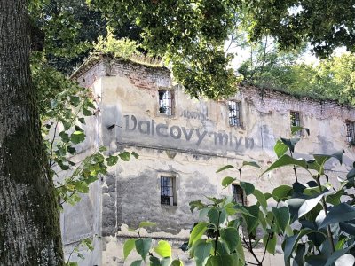 Mlyn je zrúcaninou. Vedľa stojí nový rodinný dom.