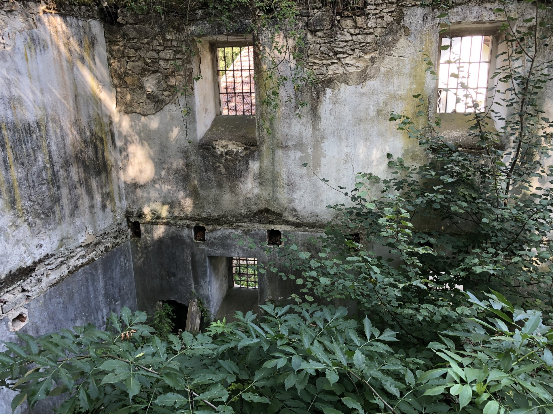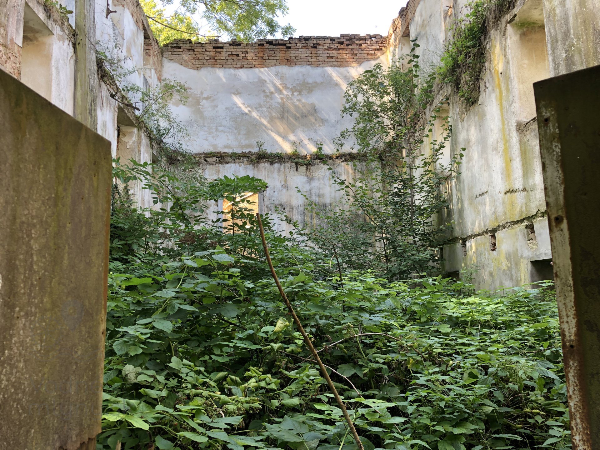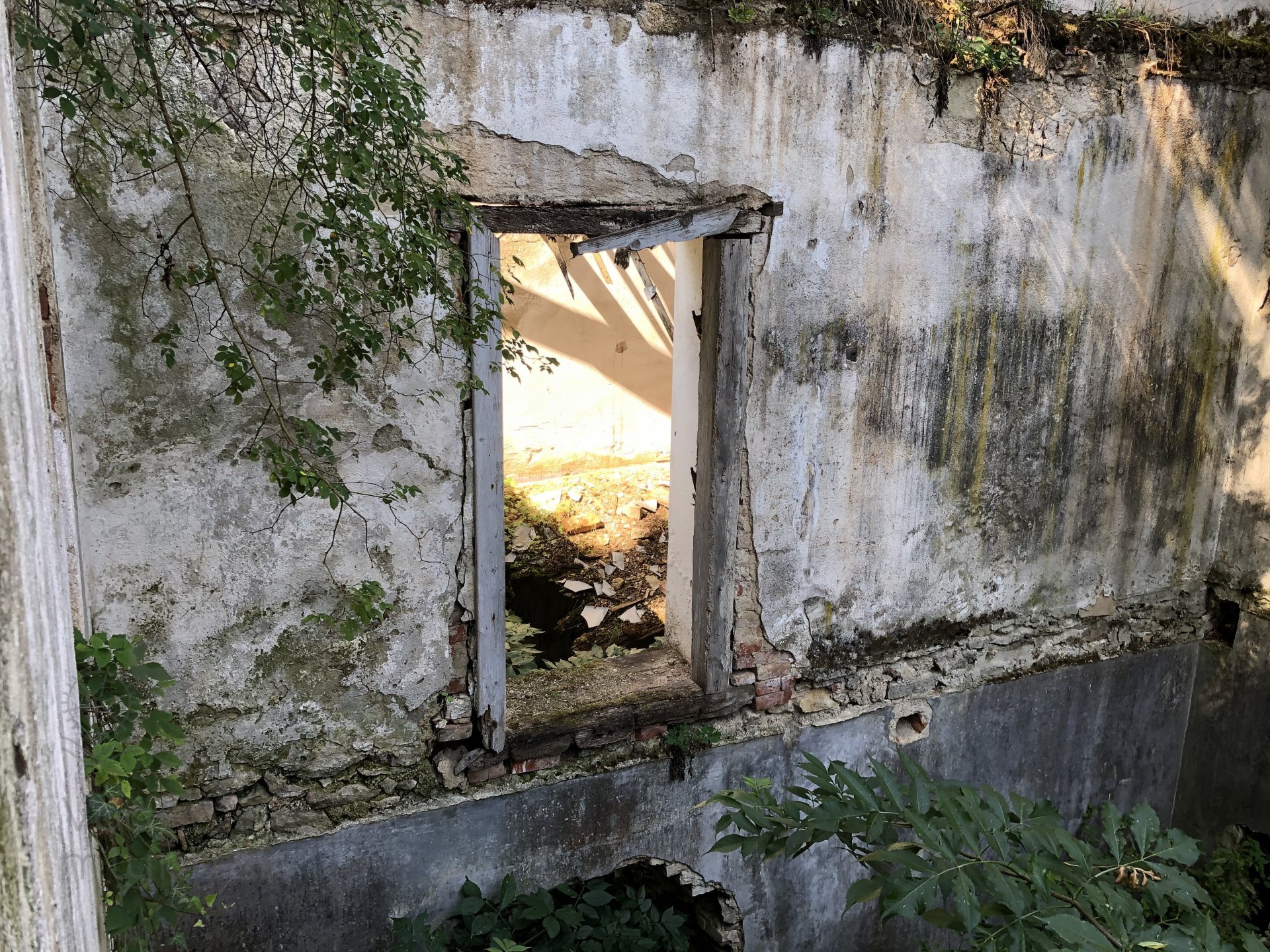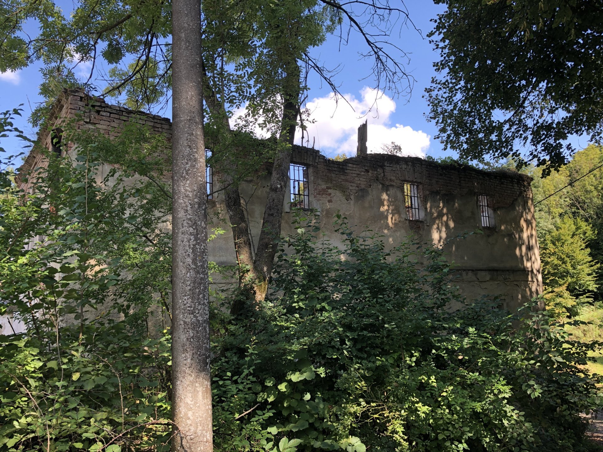 Mlyn je zrúcaninou. Vedľa stojí nový rodinný dom.