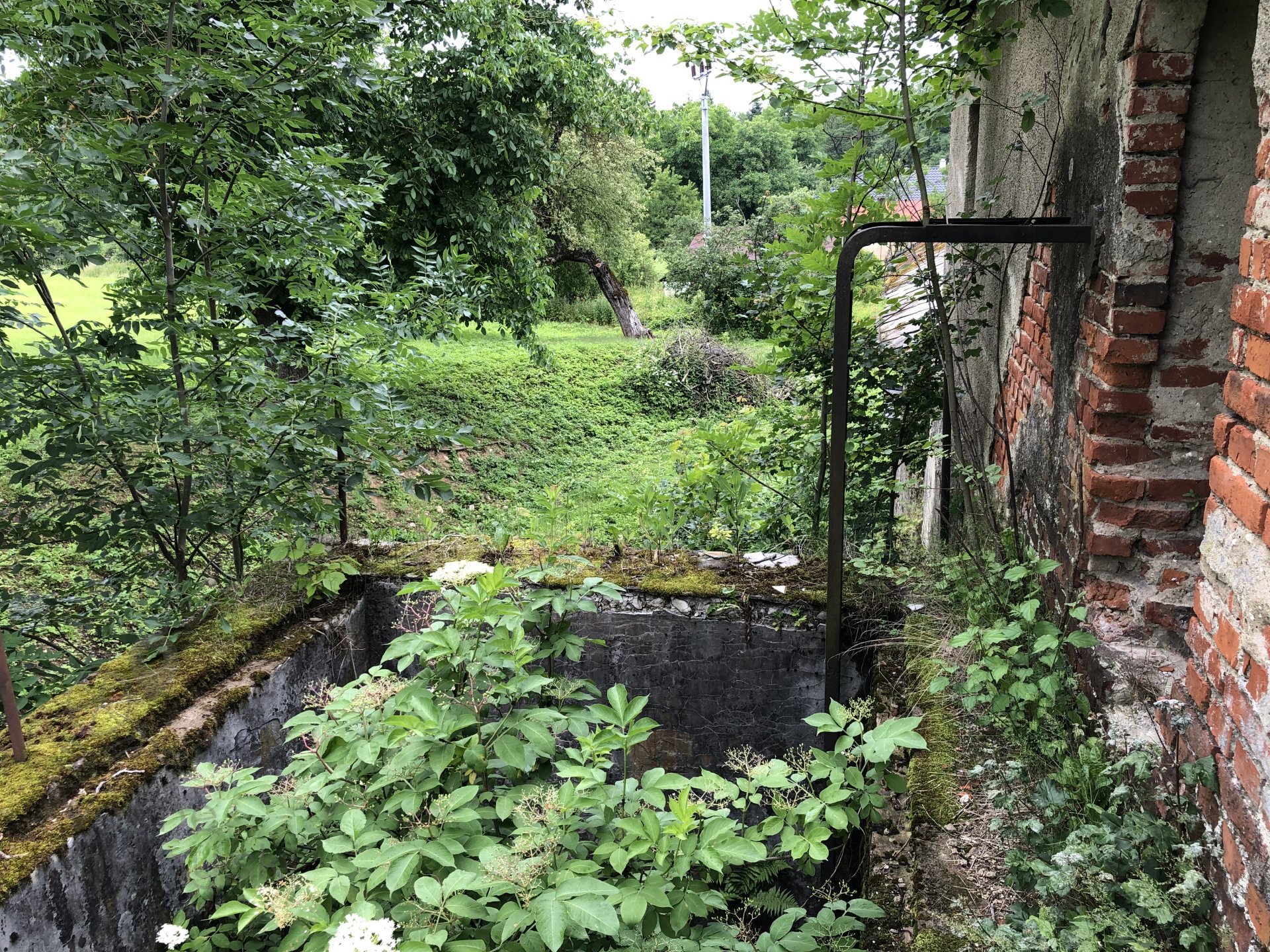 Turbínová šachta s vystupujúcim rebríkom, 2023, © Wagner, (Prvky na obrázku: betónový žľab, turbínová šachta)