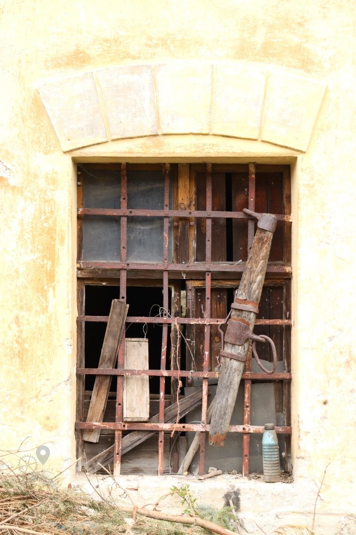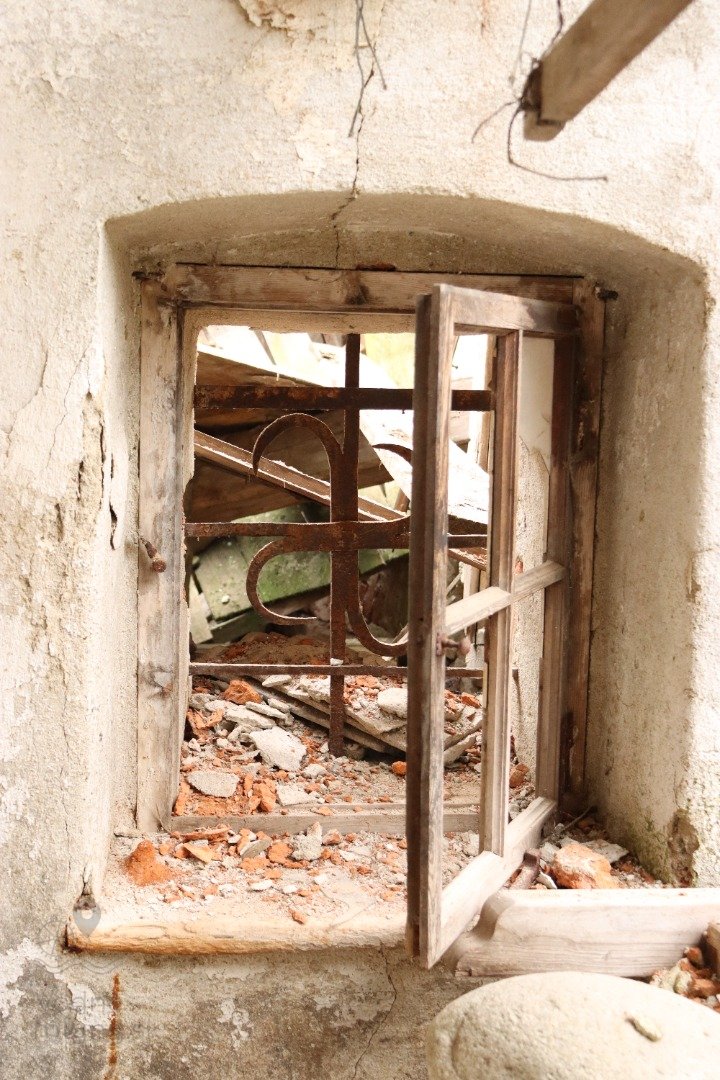 Okno s mrežou v zrutenej časti mlyna, 2023, © Martin Petráš, (Prvky na obrázku: okno)