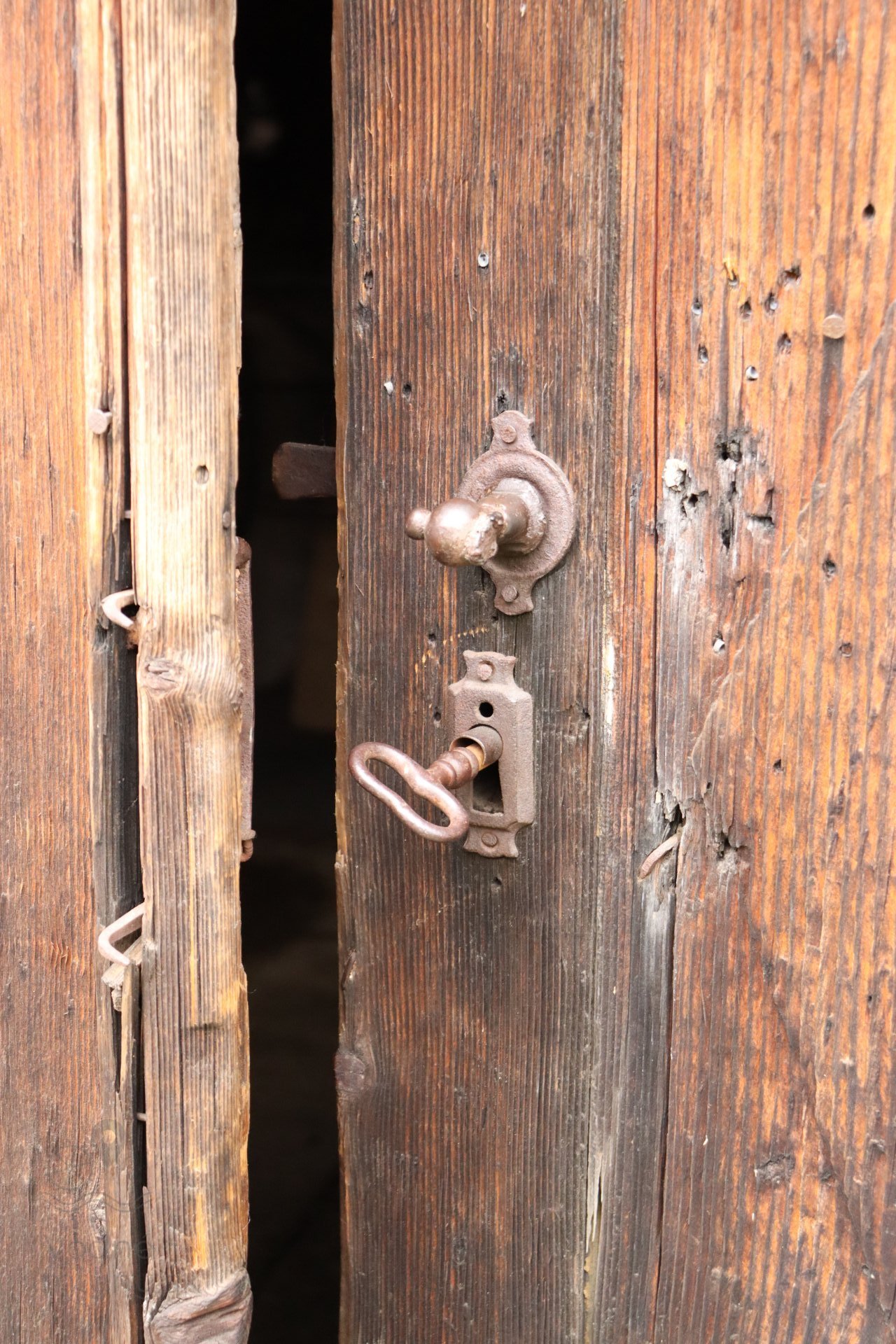 detail zámku na dverách do mlynice, 2023, © Martin Petráš, (Prvky na obrázku: dvere)