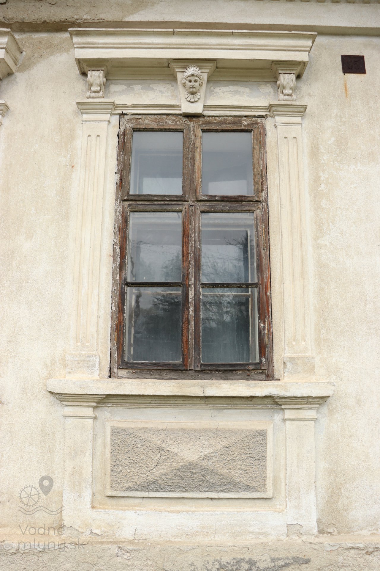 Detail okna obytnej časti, 2023, © Martin Petráš, (Prvky na obrázku: okno, plastická omietková výzdoba fasád a štítov)