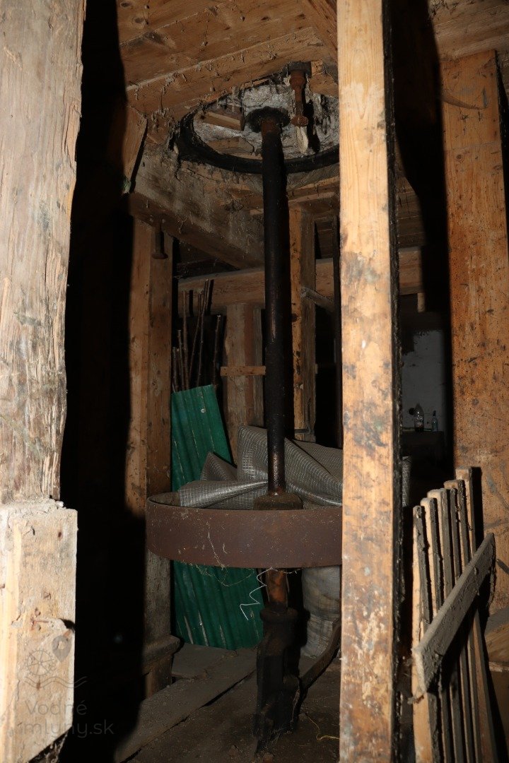 Kamenné mlecie zloženie a kran na zdvíhanie kameňov, 2023, © Martin Petráš, (Prvky na obrázku: kamenné zloženie (šrotovacie, mlecie))