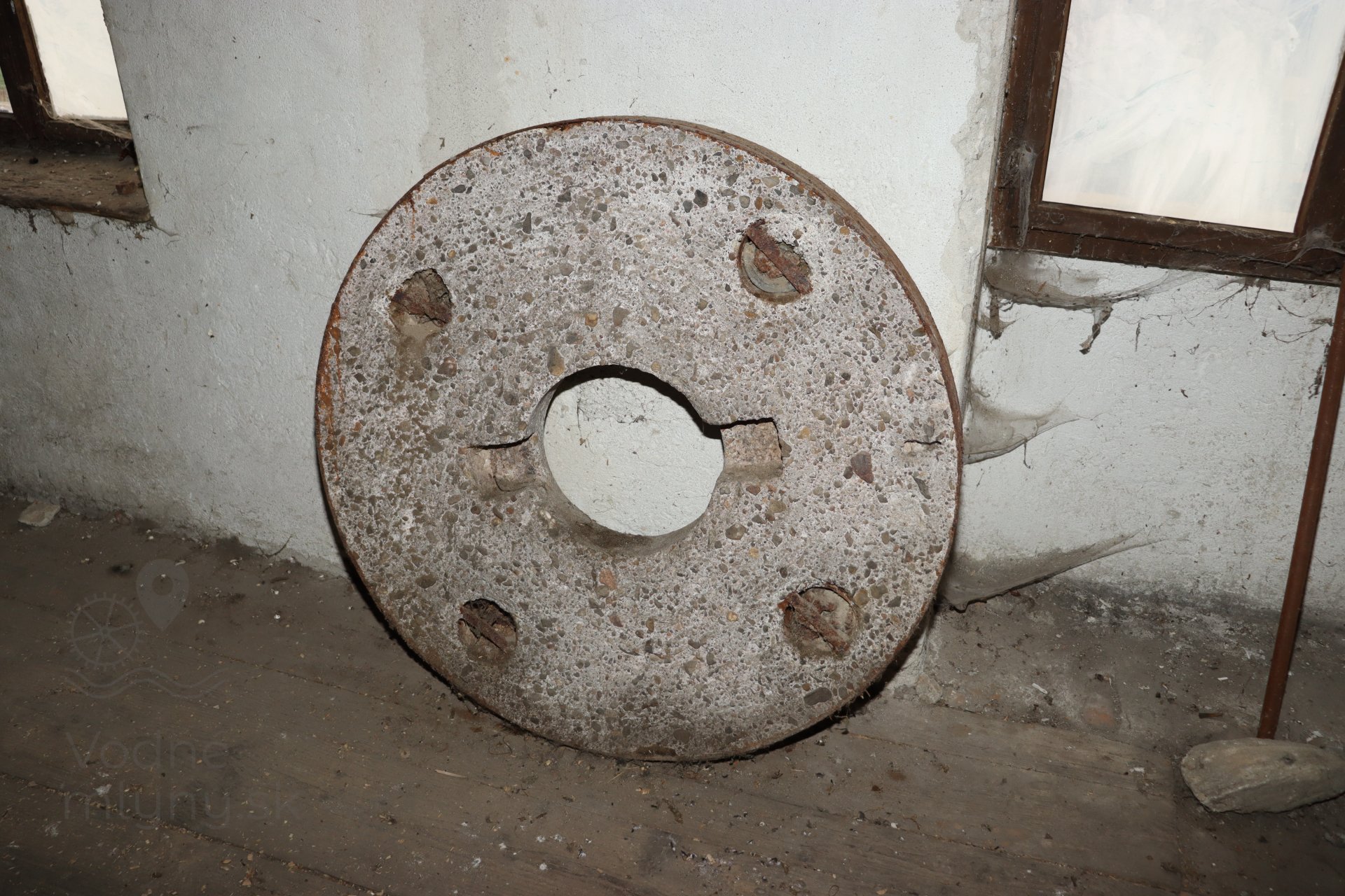 Umelý mlecí kameň so šachtičkami pre vyvažovacie závažia, 2023, © Martin Petráš, (Prvky na obrázku: mlecí kameň)