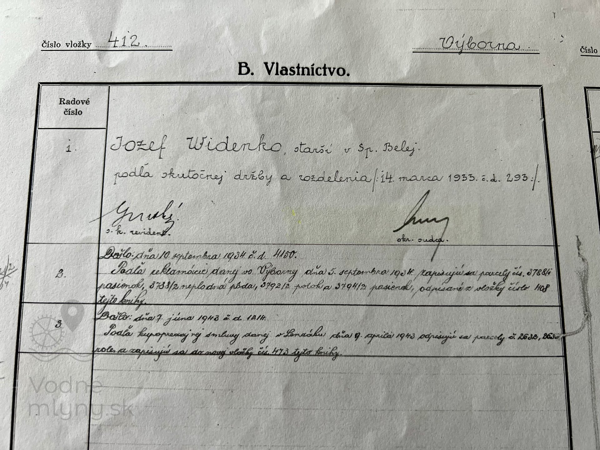 Držitelia mlyna v chronologickom slede