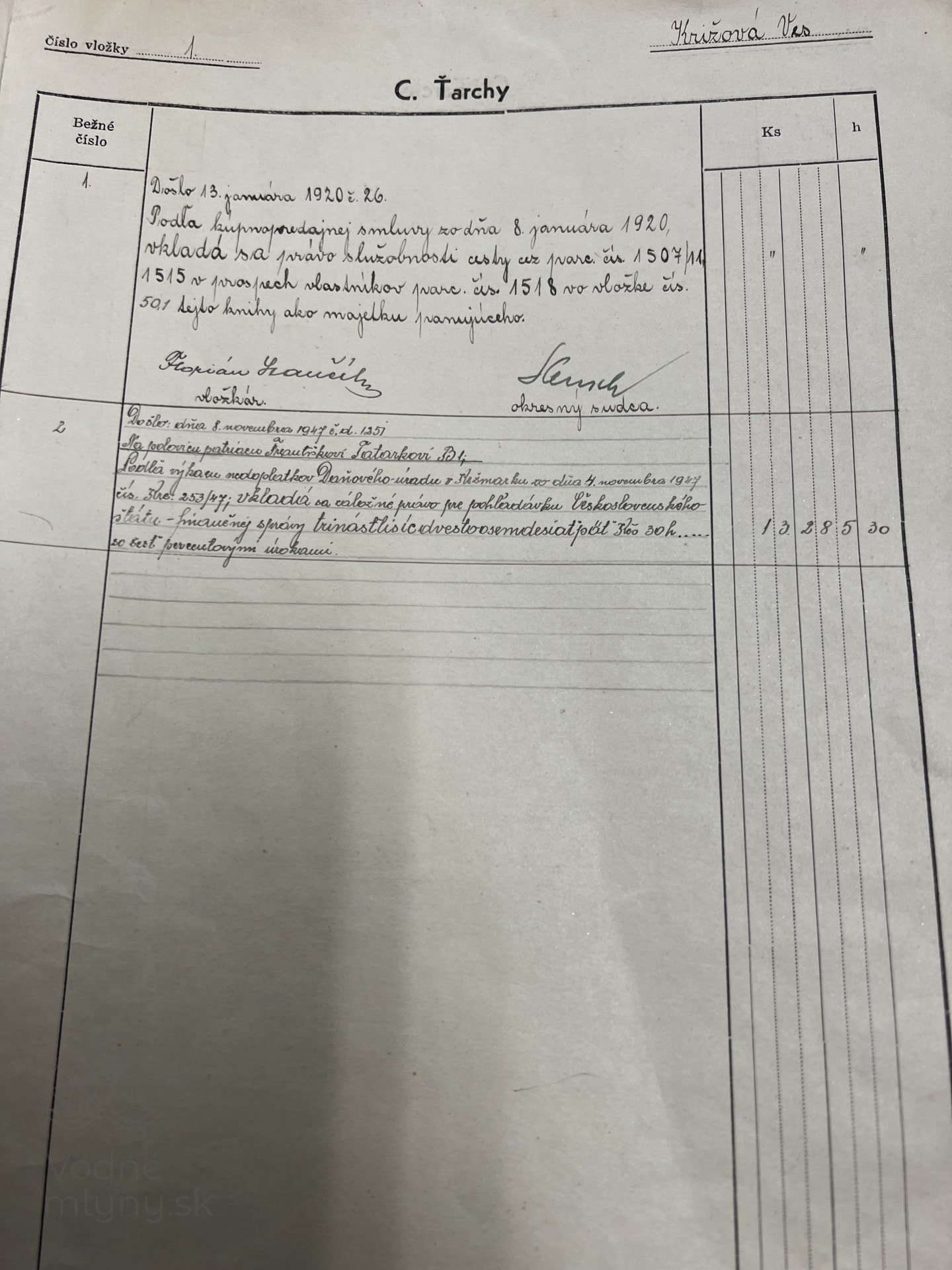 Údaje zo Súpisu VD RČS, zachytávajúce stav roku 1930