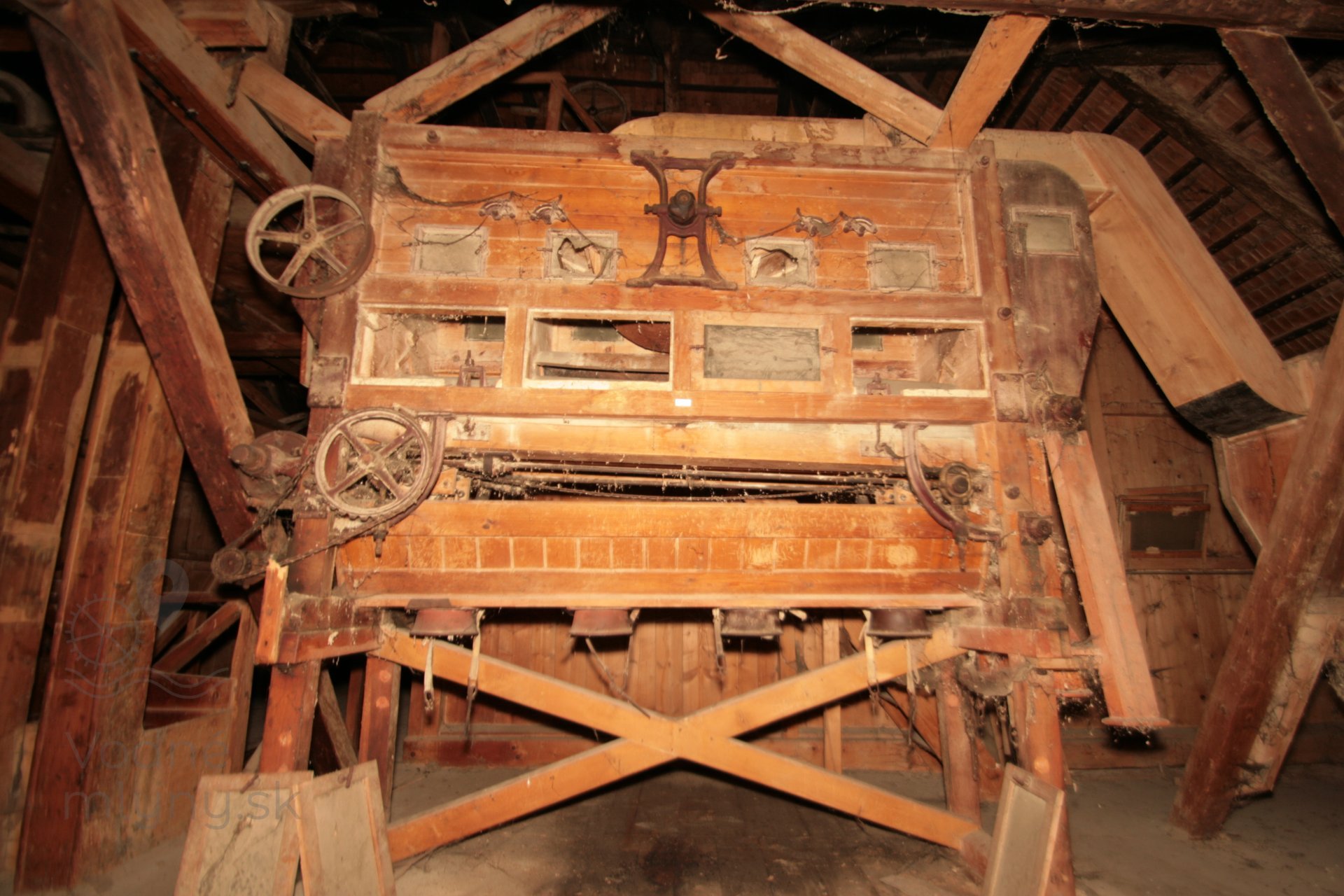Dvojica mohutných múčnych hranolových vysievačov s predvysievačmi, pochádzajúce zo začiatku 20. storočia, 2019, © Martin Petráš, (Prvky na obrázku: vysievač hranolový)