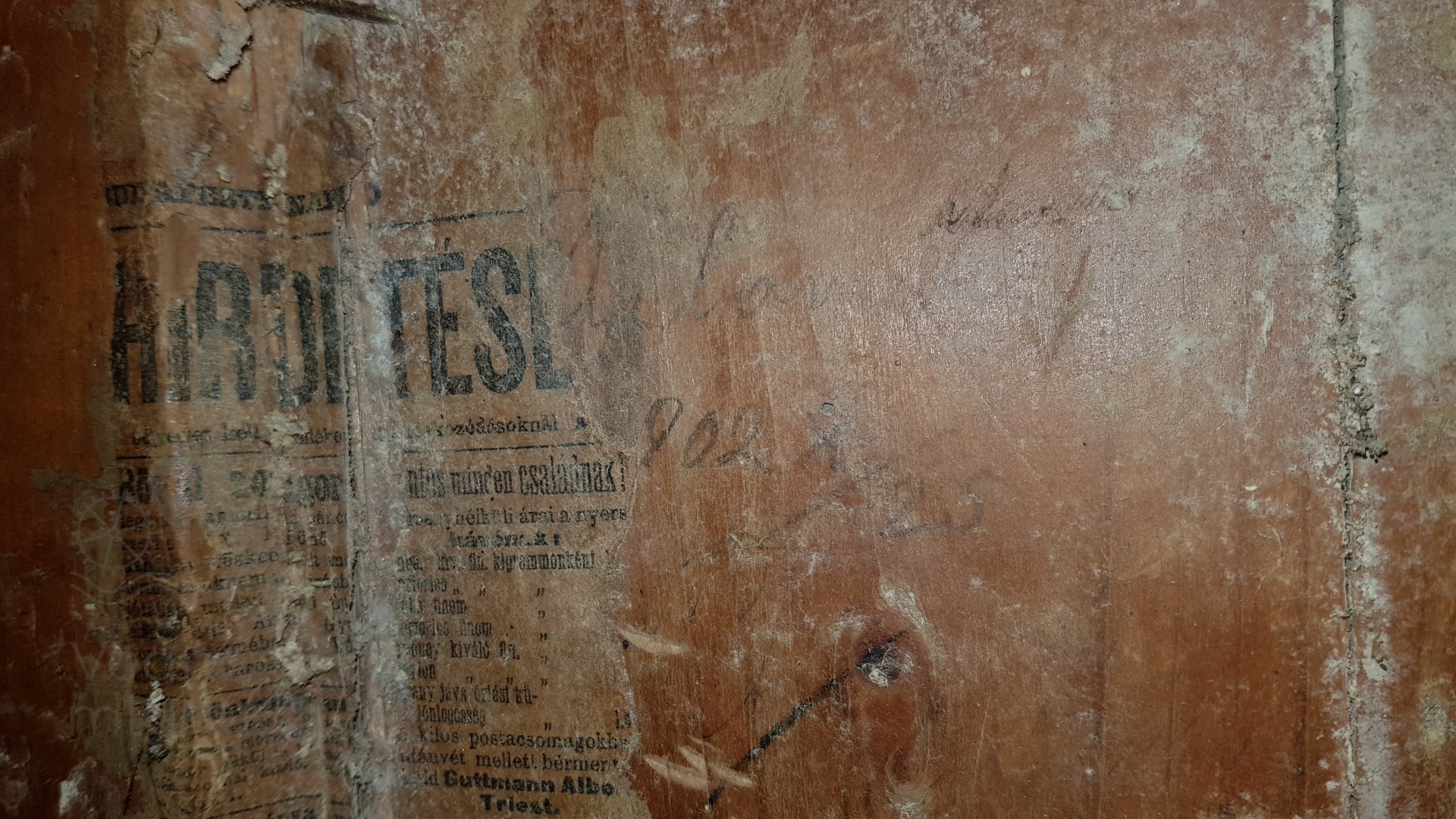Detail opravy netesnosti skrine vysievača dobovou tlačou a datovanie ceruzkou 25. 10. 1902, 2021, © Martin Petráš