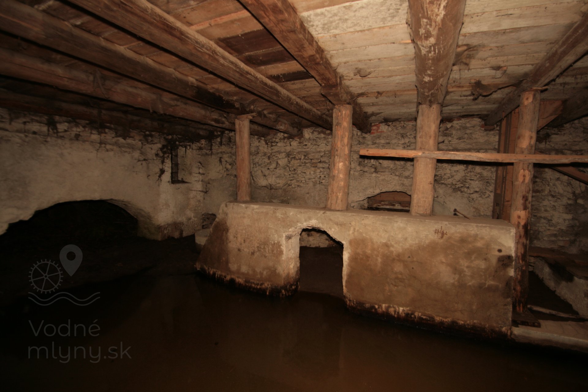 Celkový pohľad do rozľahlej ráštubne, v pozadí vrch turbínovej komory, 2021, © Martin Petráš, (Prvky na obrázku: kolesová jama, ráštubňa)