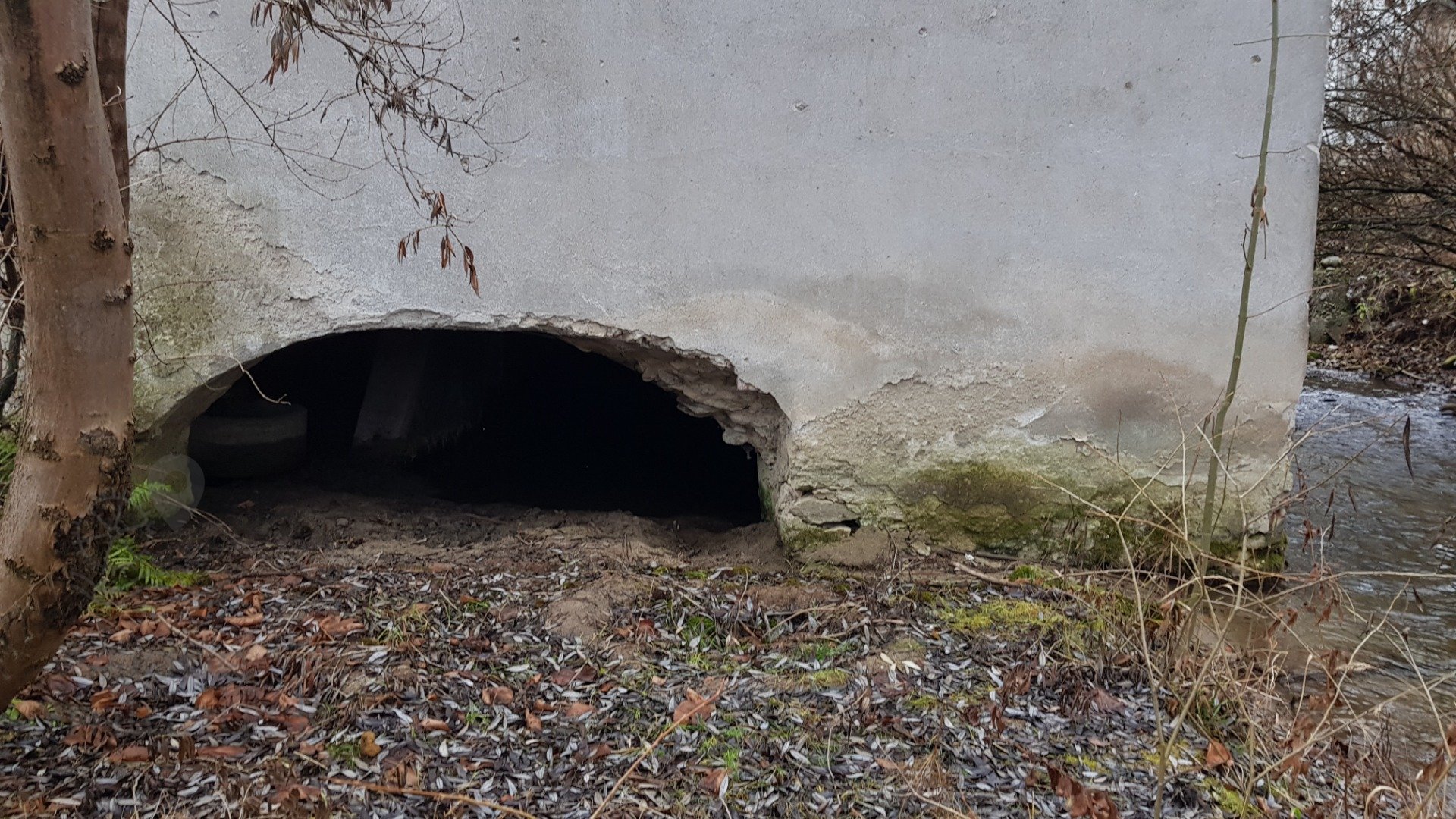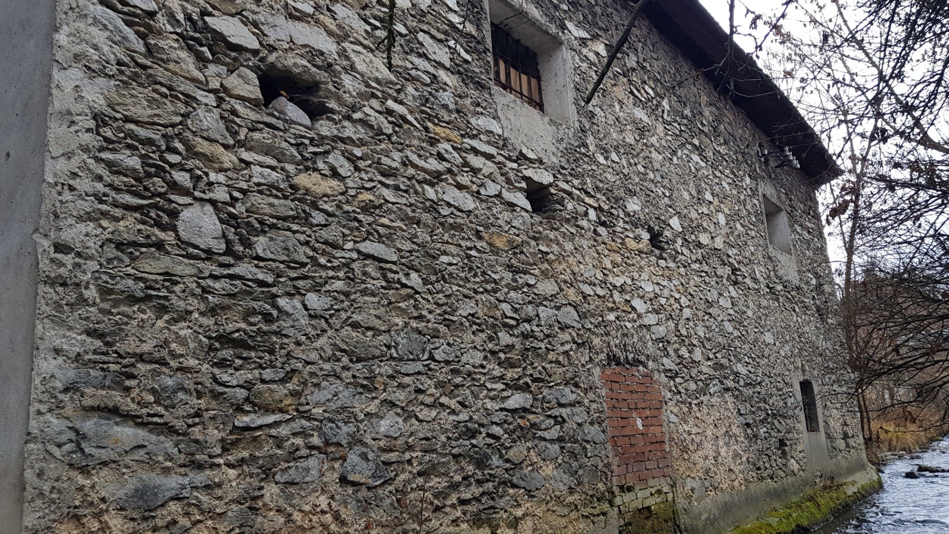 Prestup hriadeľa zrušeného vodného kolesa a stopy po osadení prevodu pre pohon predlohového hriadeľa, z ktorého bola v tomto usporiadaní hnanaá transmisia v susednom podkolí., 2021, © Martin Petráš