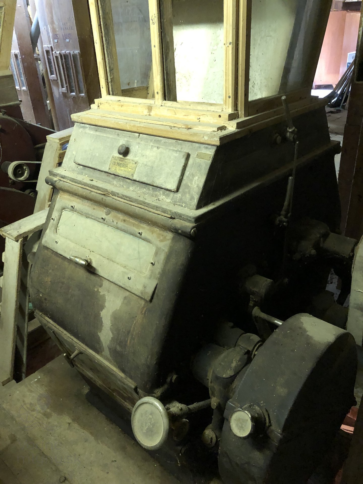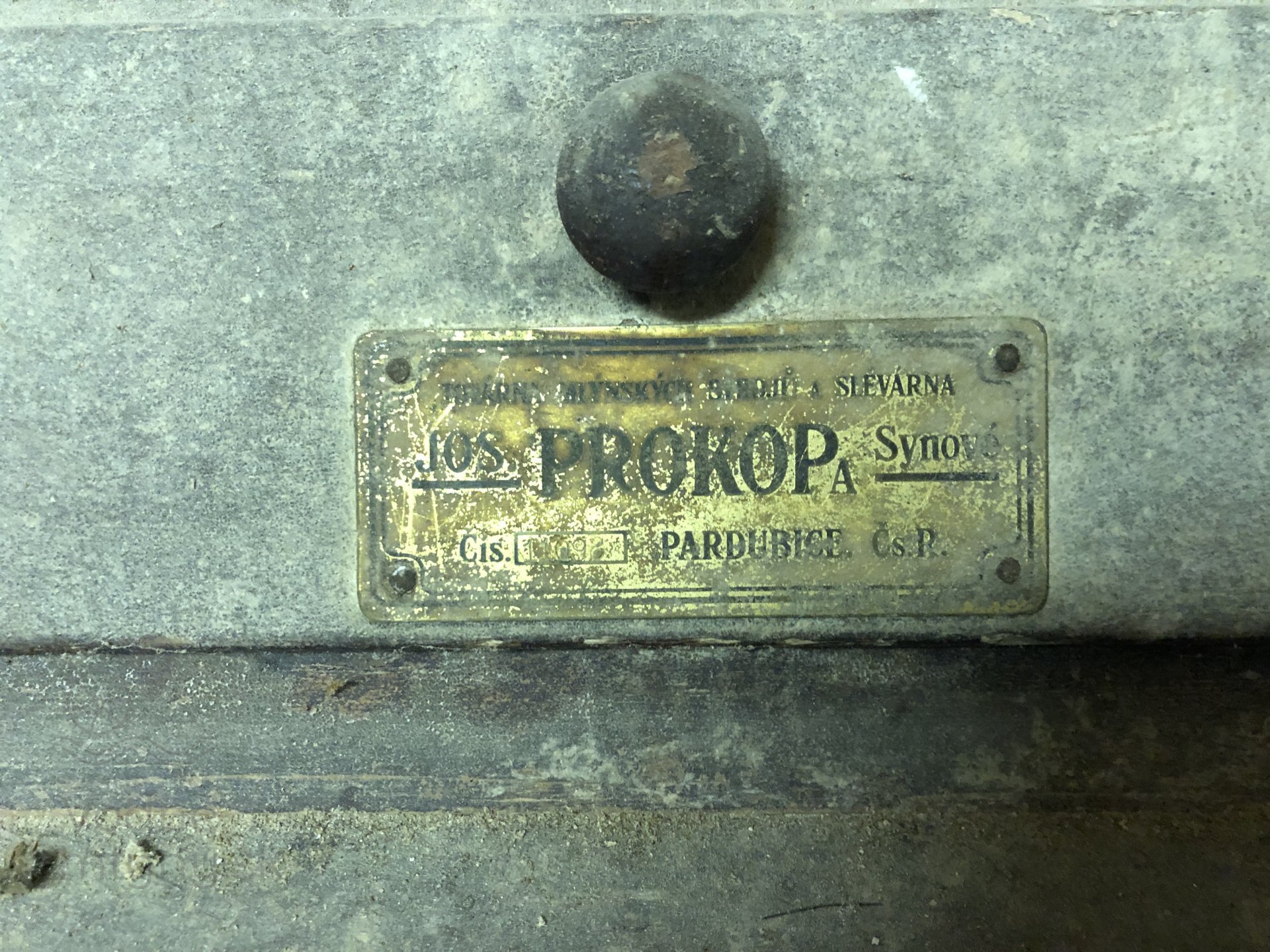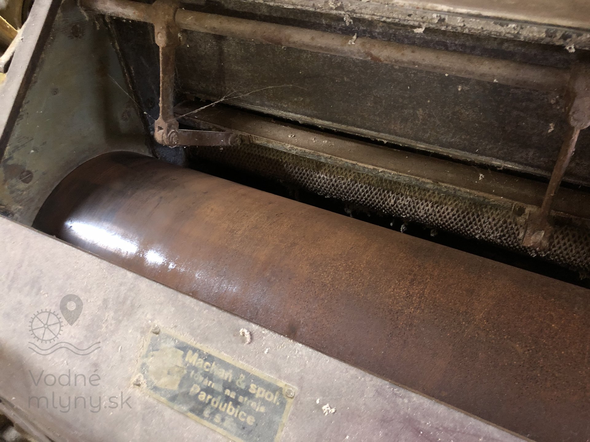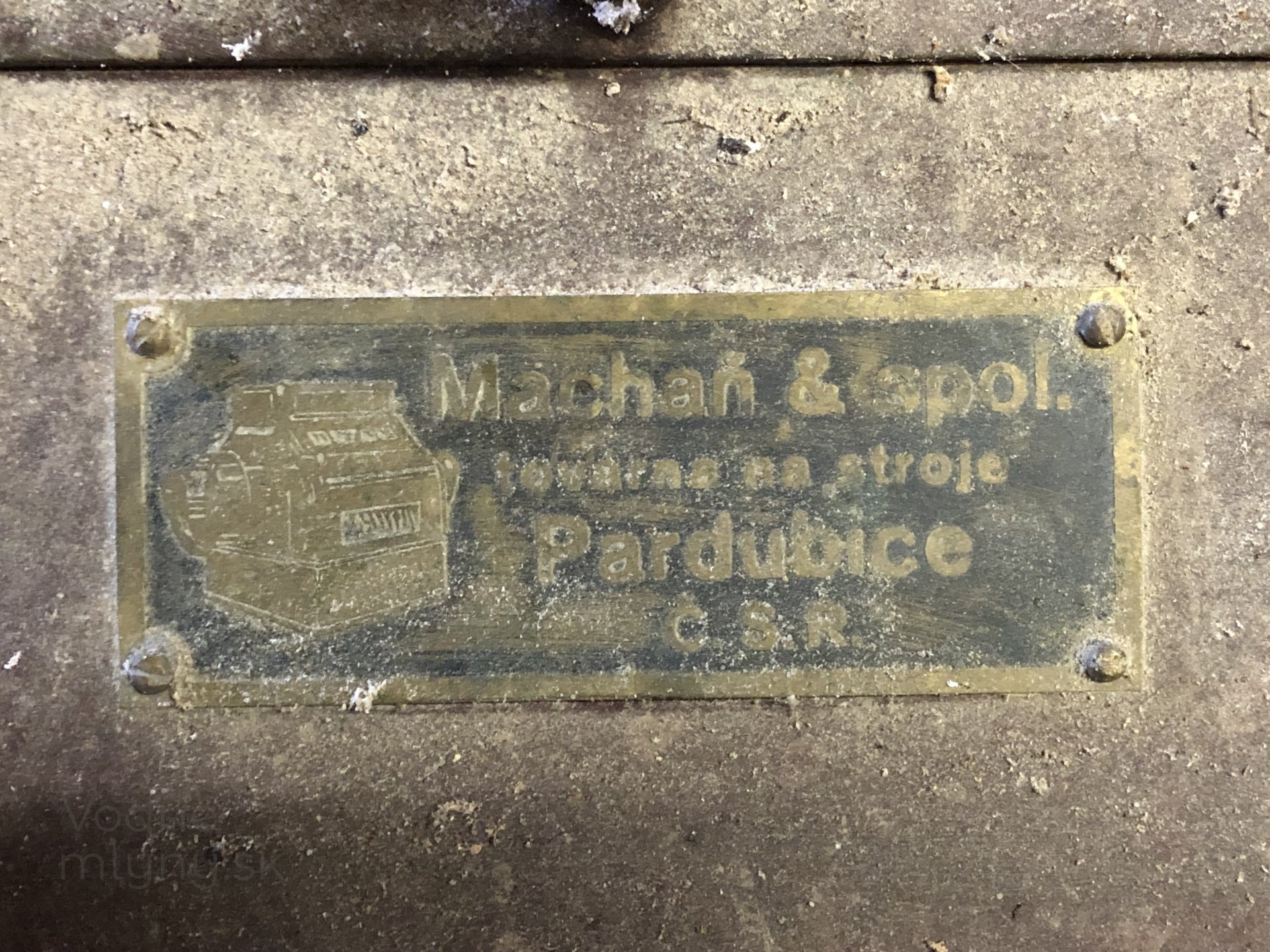 Výrobný štítok na dvojitej valcovej stolici Prokop, 2023, © Wagner, (Prvky na obrázku: Valcová stolica, značka výrobcu na technologickom vybavení)