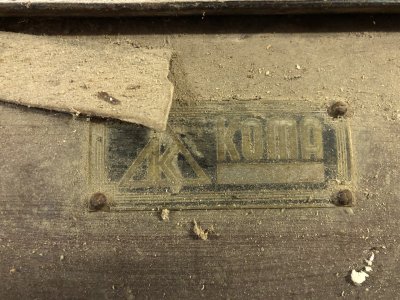 Výrobný štítok na dvojitej valcovej stolici KOMA, 2023, © Wagner, (Prvky na obrázku: Valcová stolica, značka výrobcu na technologickom vybavení)