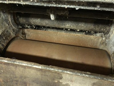 Otvor pre remeň od hlavnej transmisie pre pohon skrutkového dopravníka, 2023, © Wagner, (Prvky na obrázku: transmisie, remenice, prevody, transmisie, remenice, prevody - ozubené kolesá, pastorky (priemyselne vyrobené), transmisie, remenice, prevody - transmisný hriadeľ s remenicami (vyrobenými priemyselne či remeselne), výťahy a dopravníky)