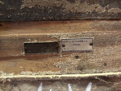 Výrobný štítok na parnej lokomobile, 2023, © Wagner, (Prvky na obrázku: Pomocný motor, značka výrobcu na pomocnom motore)