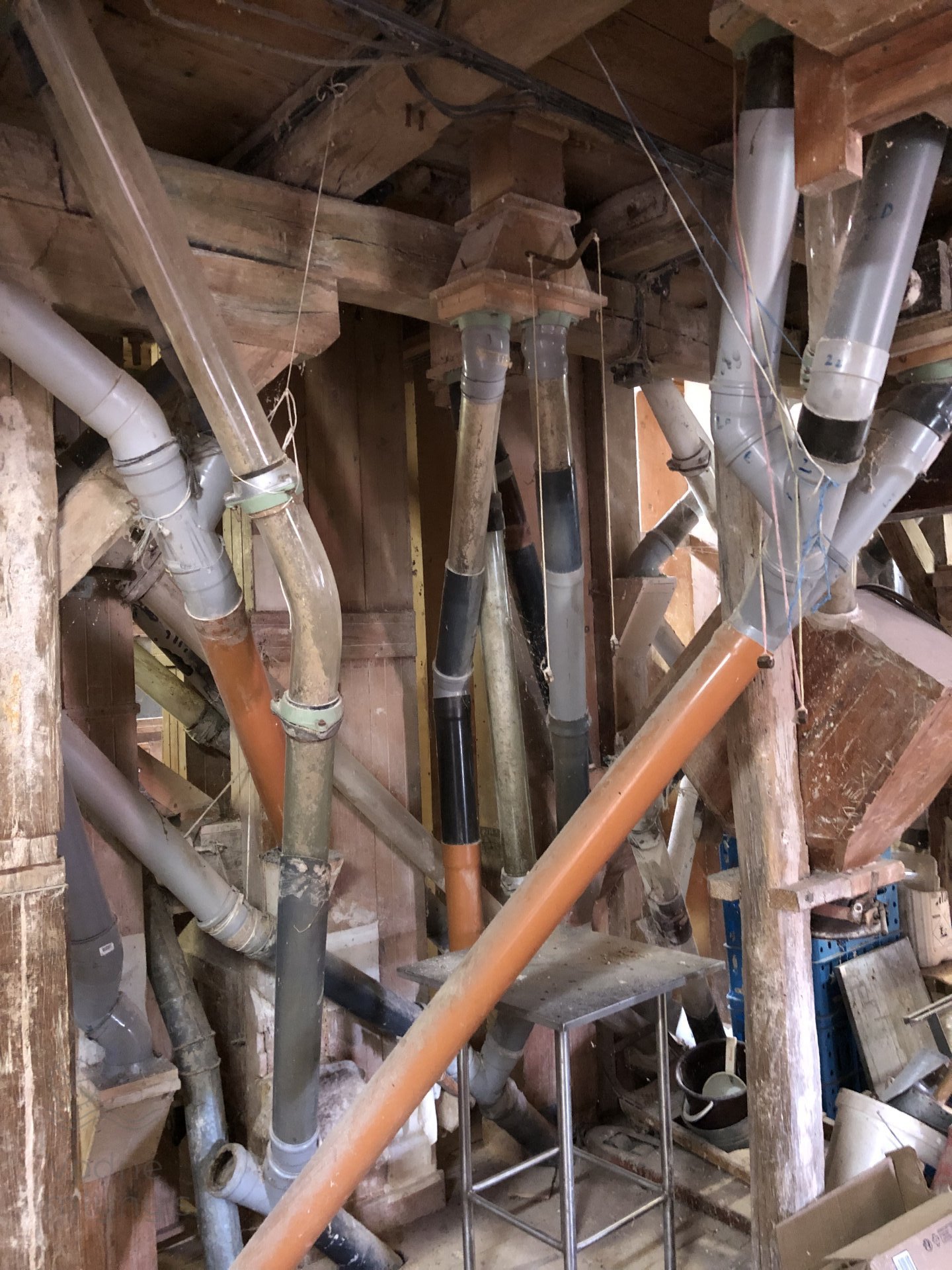 Korčekové dopravníky v podkroví mlyna, 2023, © Wagner, (Prvky na obrázku: výťahy a dopravníky)
