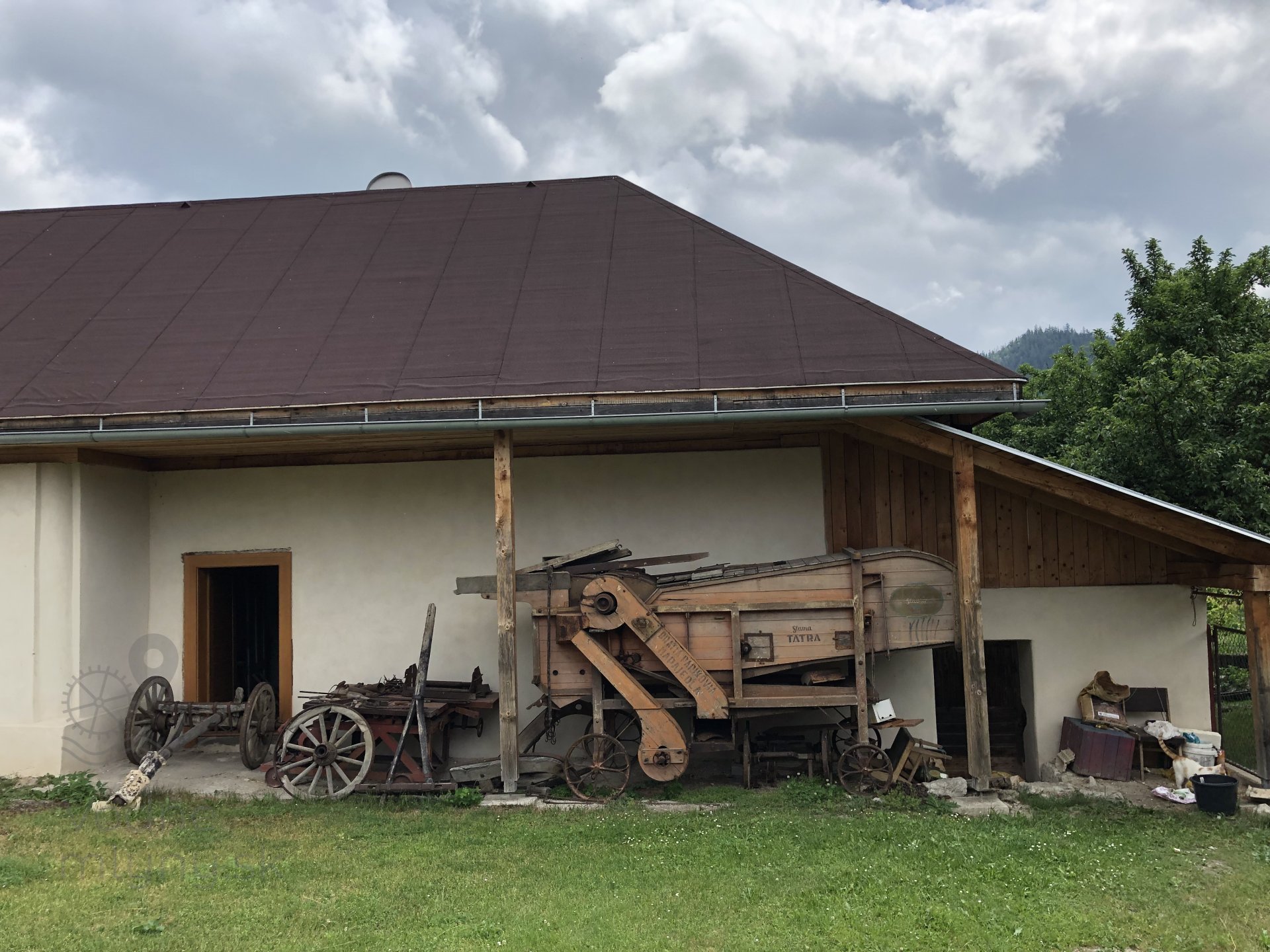 Transmisia v prístavbe na pohon dielne a krúpnika, 2023, © Wagner, (Prvky na obrázku: transmisie, remenice, prevody, transmisie, remenice, prevody - transmisný hriadeľ s remenicami (vyrobenými priemyselne či remeselne))