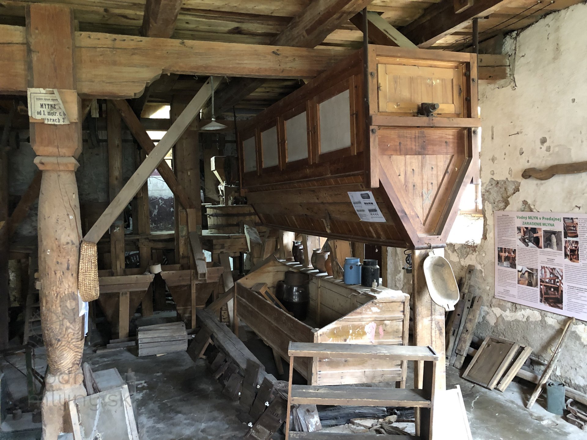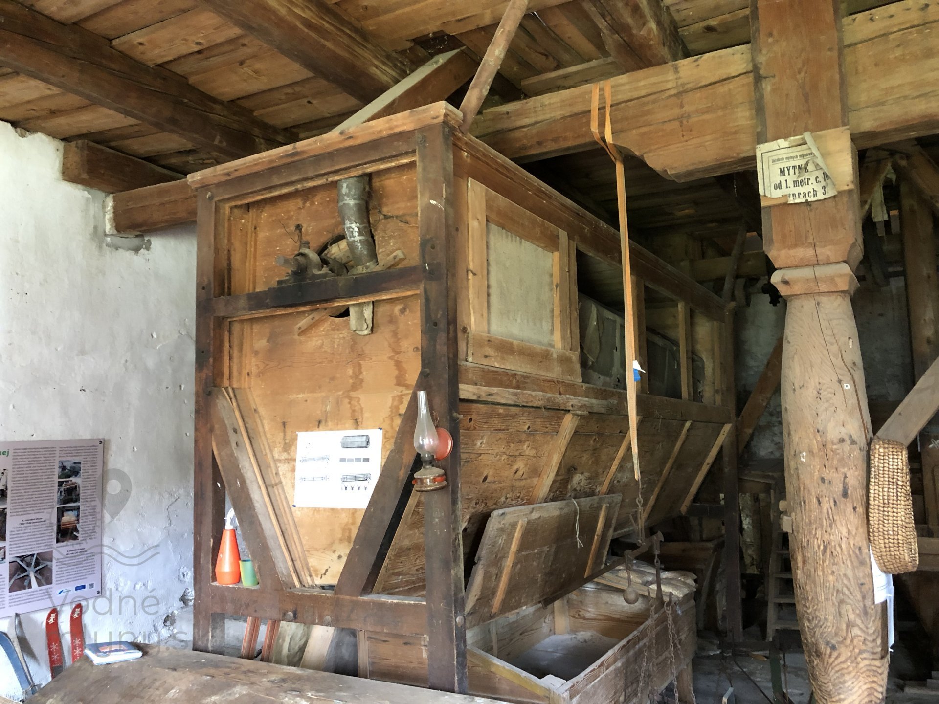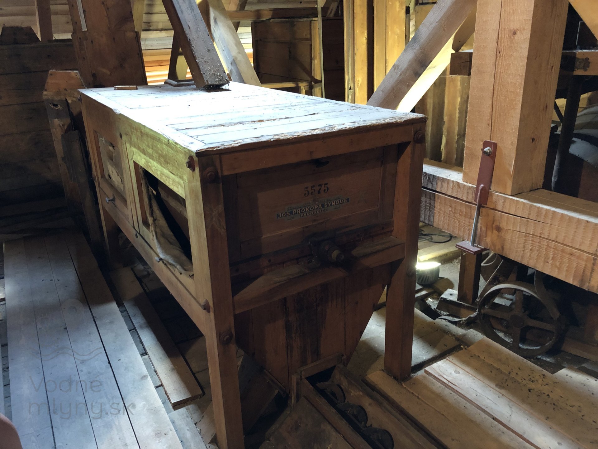 Hranolový vysievač v prízemí mlyna s múčnou truhlou, 2023, © Wagner, (Prvky na obrázku: múčna truhla, vysievač hranolový)