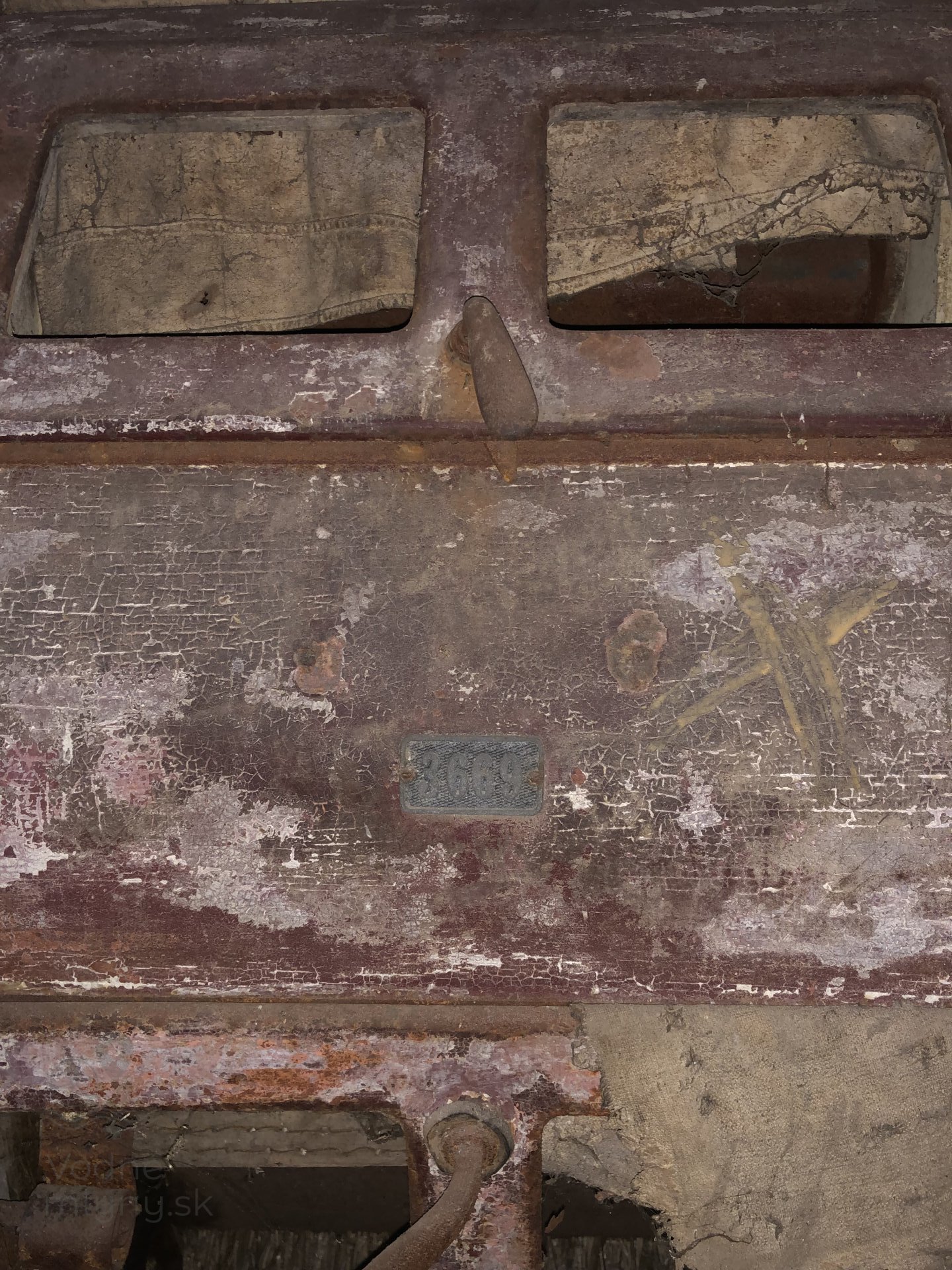 Maľovaná značka výrobcu na hranolovom vysievači, 2023, © Wagner, (Prvky na obrázku: vysievač hranolový, značka výrobcu na technologickom vybavení)