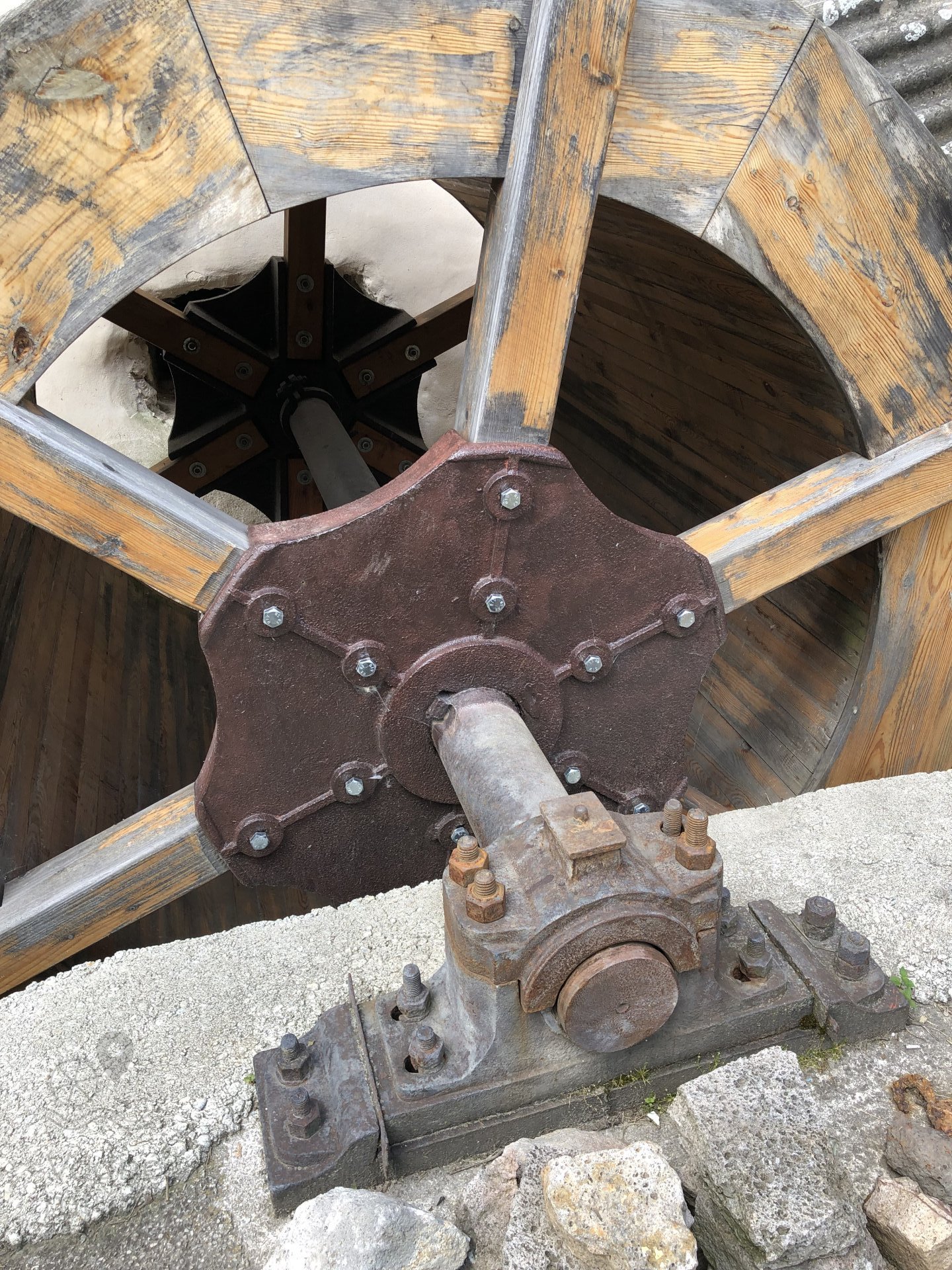 Detail hriadele a liatinových roziet vodného kolesa, 2023, © Wagner, (Prvky na obrázku: Vodné koleso)