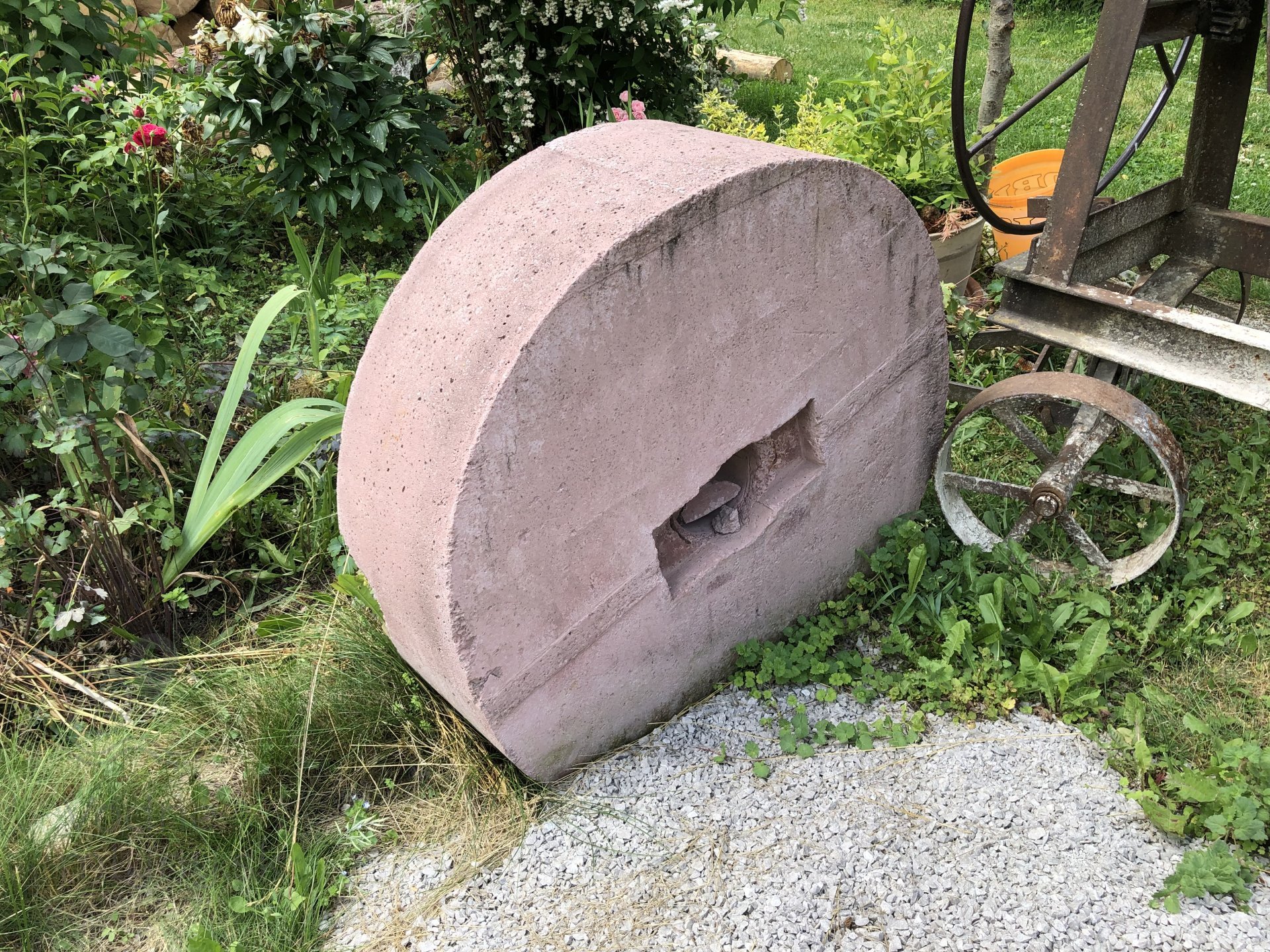 Umelý mlecí kameň v záhrade mlyna, 2023, © Wagner, (Prvky na obrázku: mlecí kameň)