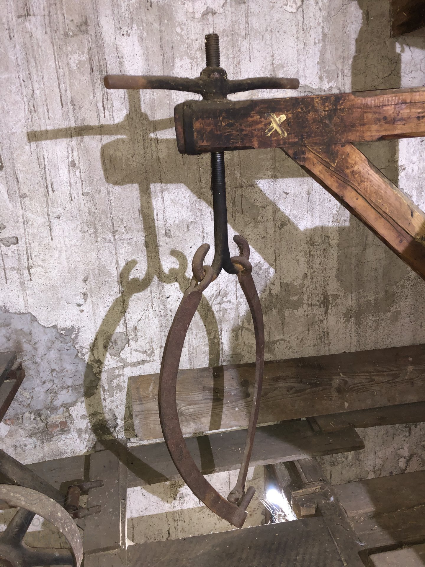 Žeriav na zdvíhanie mlecích kameňov, 2023, © Wagner, (Prvky na obrázku: kamenné zloženie (šrotovacie, mlecie))