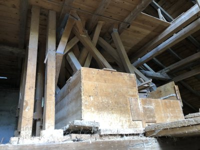 V mlynici sa dnes nezachovalo žiadne strojné vybavenie. Ostali tu len dve násypky po valcových stoliciach a na poschodí sú zvyšky po vysievacích zariadeniach.