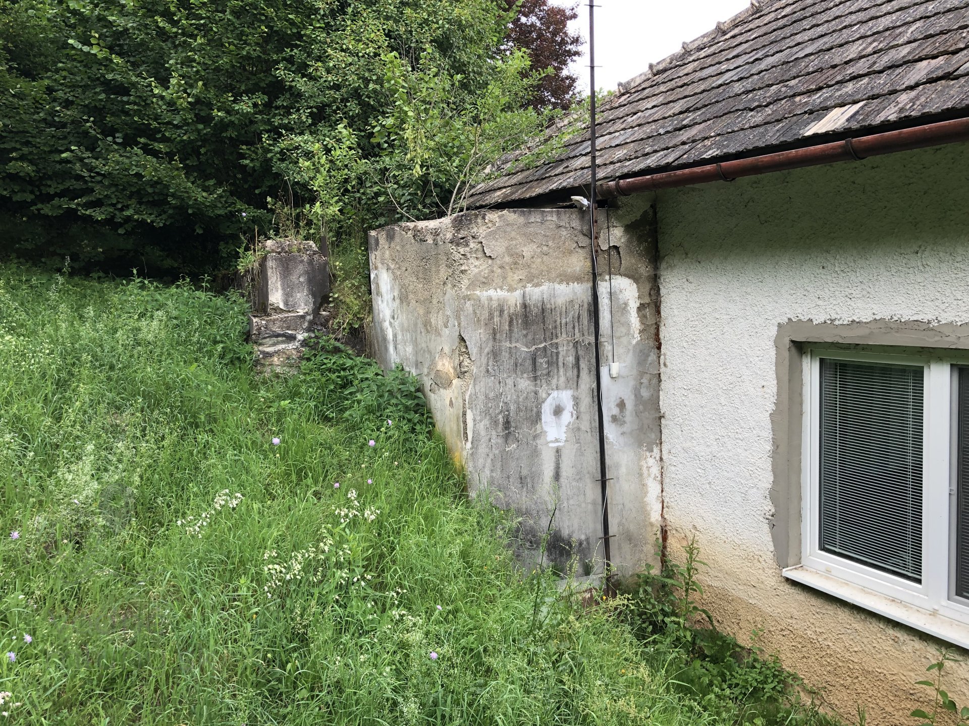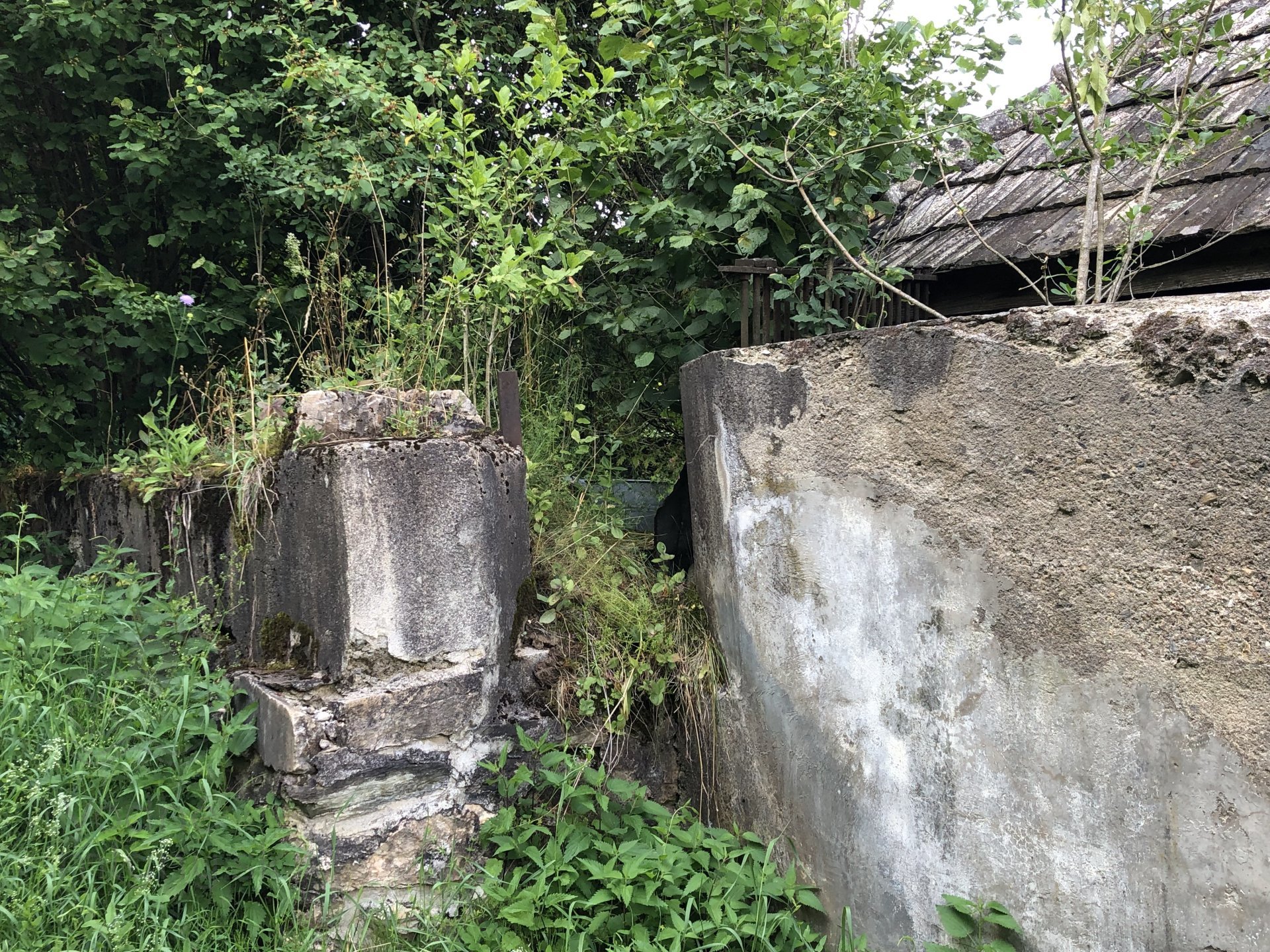 Stavzaniknutý so stopami po osadení