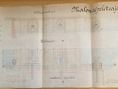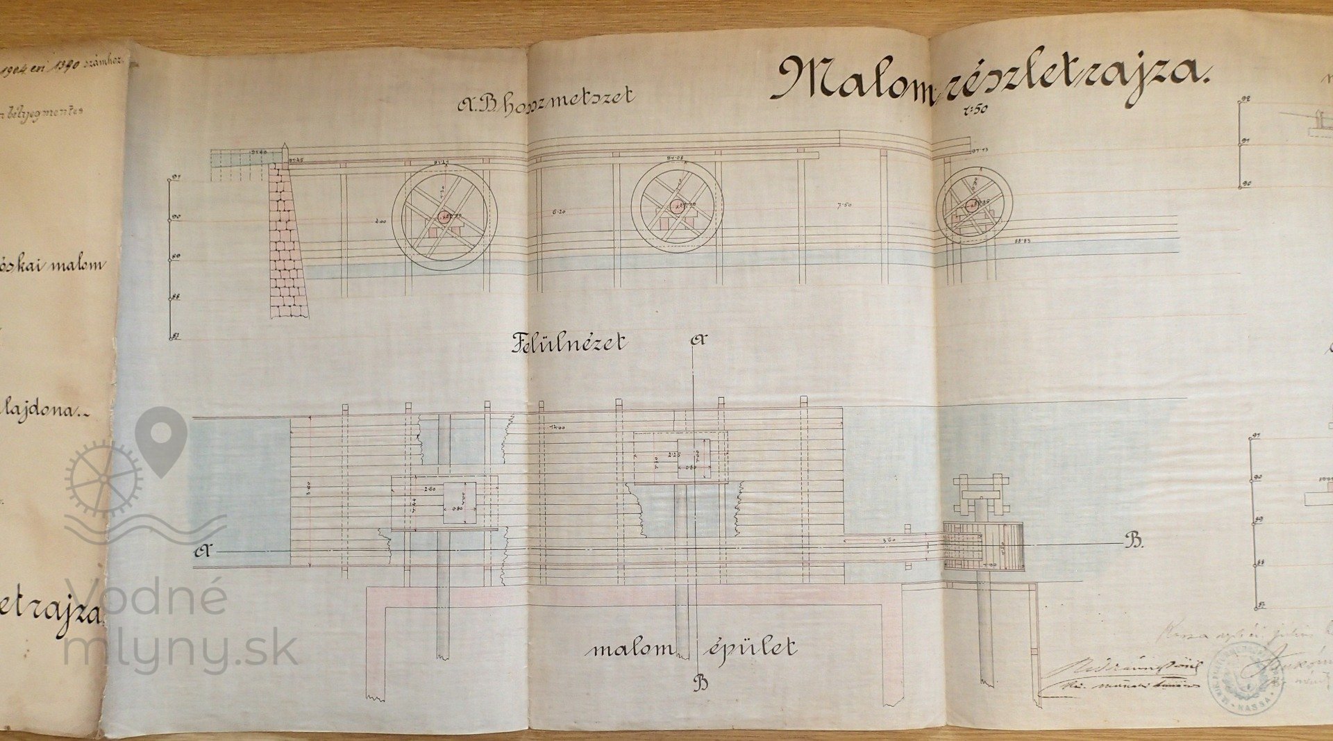 Na historickej katastrálnej mape z roku 1904 je mlyn vyobrazený ako dvojkolesový. Listiny a plány k vodoprávnemu povoleniu stavby z roku 1908 zobrazujú mlyn ako trojkolesový poháňaný vrchnou vodou. Dve kolesá pravdepodobne slúžli pre potreby mlyna a jedno koleso pre pridruženú výrobu.