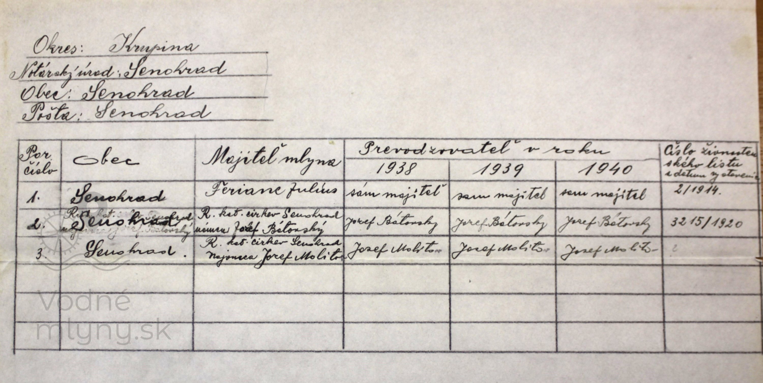 Priezviská mlynárov pôsobiacich vo mlyne: