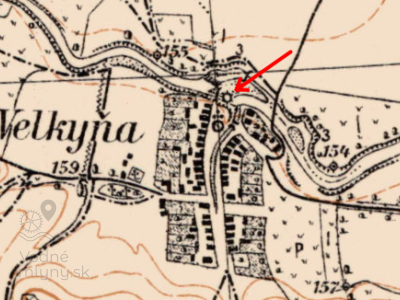 Mlyn stál pri rieke severne od kostola.