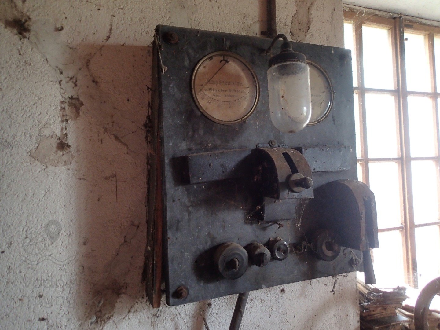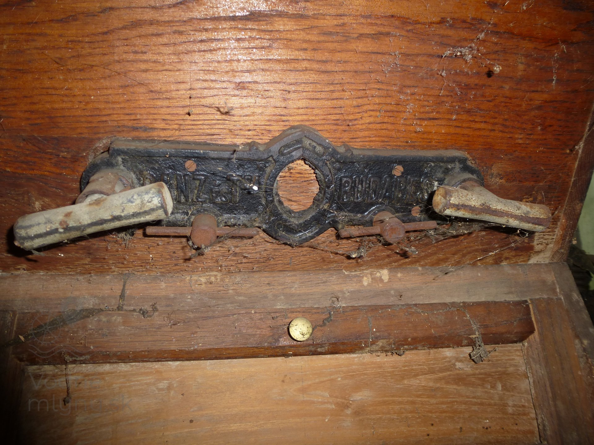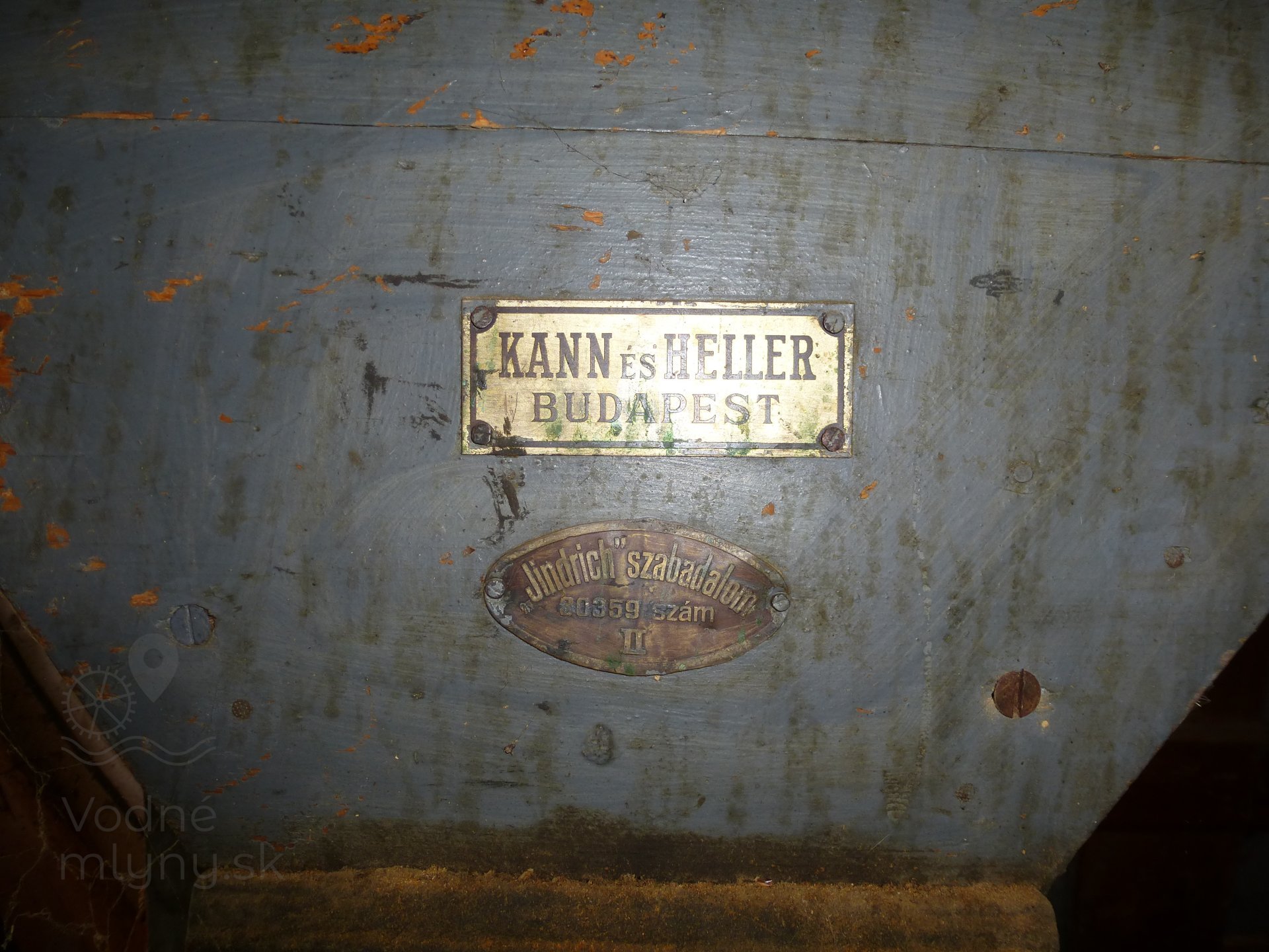 štítok valcová stolica Ganz, 2019, © Ivan Kalev, Archív PÚ SR, (Prvky na obrázku: značka výrobcu na technologickom vybavení)