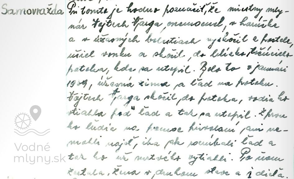 V roku 1939 spáchal mlynár Vojtech Varga samovraždu utopením v miestnom potoku. Udalosť bola opísaná v miestnej kronike.