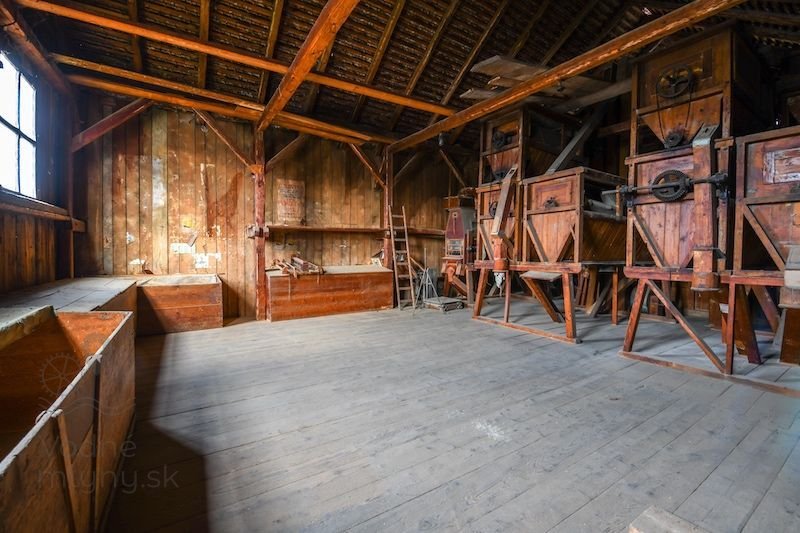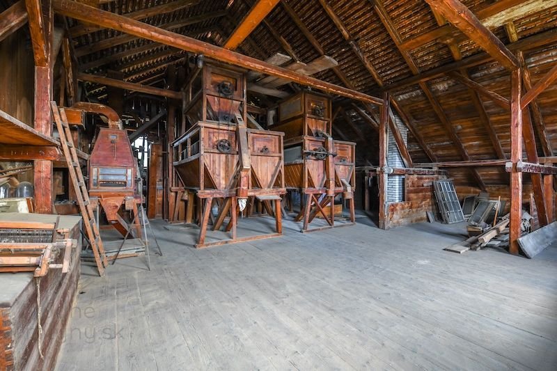 Podkrovie mlyna s hranolovými vysievačmi a múčnymi truhlami, 2022, © reality.sk