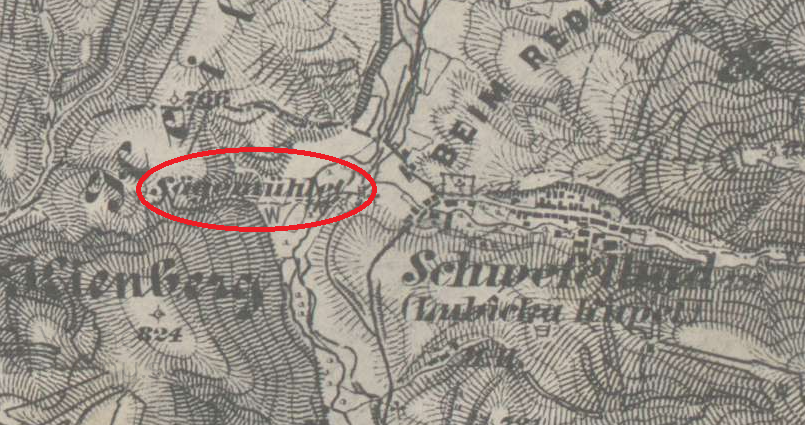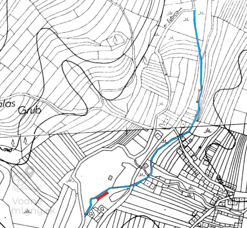 Už na 1. vojenskom mapovaní sú na tomto mieste vyznačené dva objekt na vodný pohon na spoločnom náhone, západne od Ľubických Kúpeľov. Jeden z nich bol s určitosťou mlyn, druhý zrejme píla. Na 2. vojenskom mapovaní bol mlyn označený ako "Nový", v 2. pol. 19. storočia zasa ako Sägemühle. Pohon mlyna zabezpečovala dvojica vodných kolies o spoločnom výkone 12 k.s. Objekt zotrvala v prevádzke do 50. rokov, kedy ešte tunajšia usadlosť stála. Neskoršie bola usadlosť zrovnaná so zemou a dnes po nej nenájdeme žiadne stopy, náhon bol taktiež zasypaný.