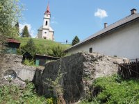 Pohľad na ruinu mlyna so zvyškom drevenej nadstavby strechy, 2015, © Marek Mičík
